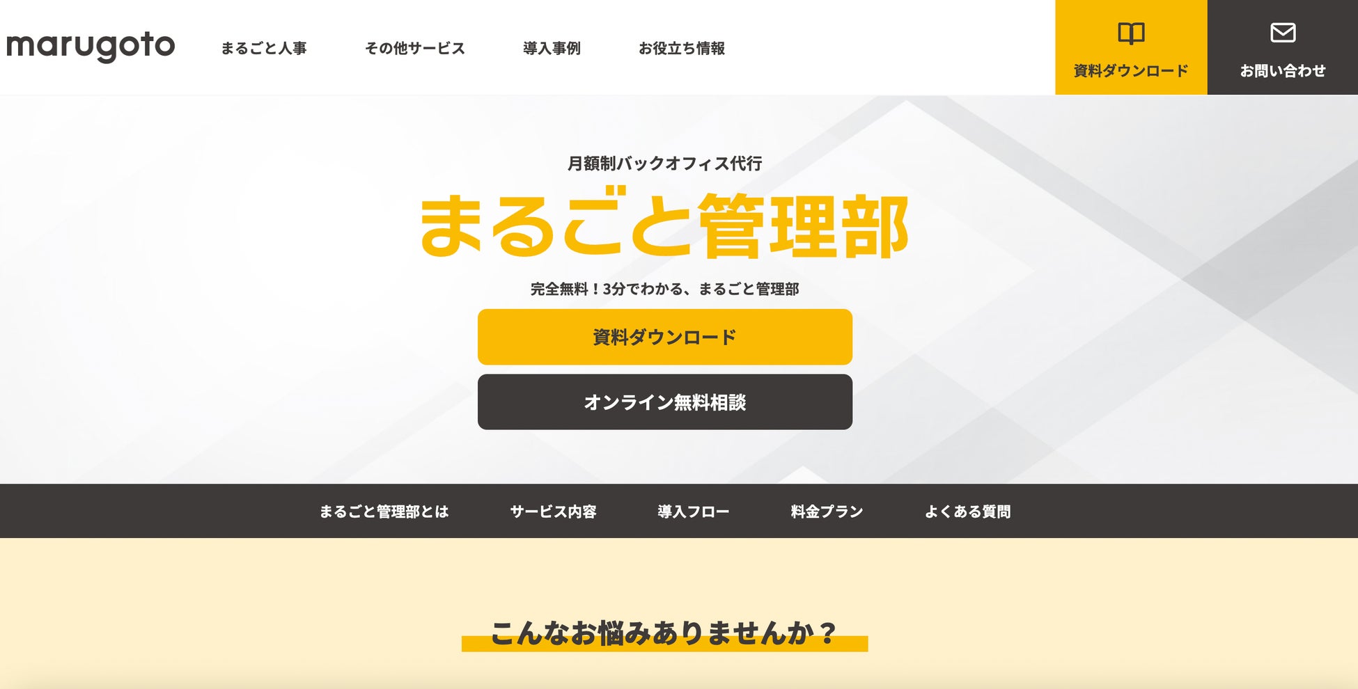 ・バックオフィス業務代行「まるごと管理部」サービスサイト:https://marugotoinc.jp/kanri/