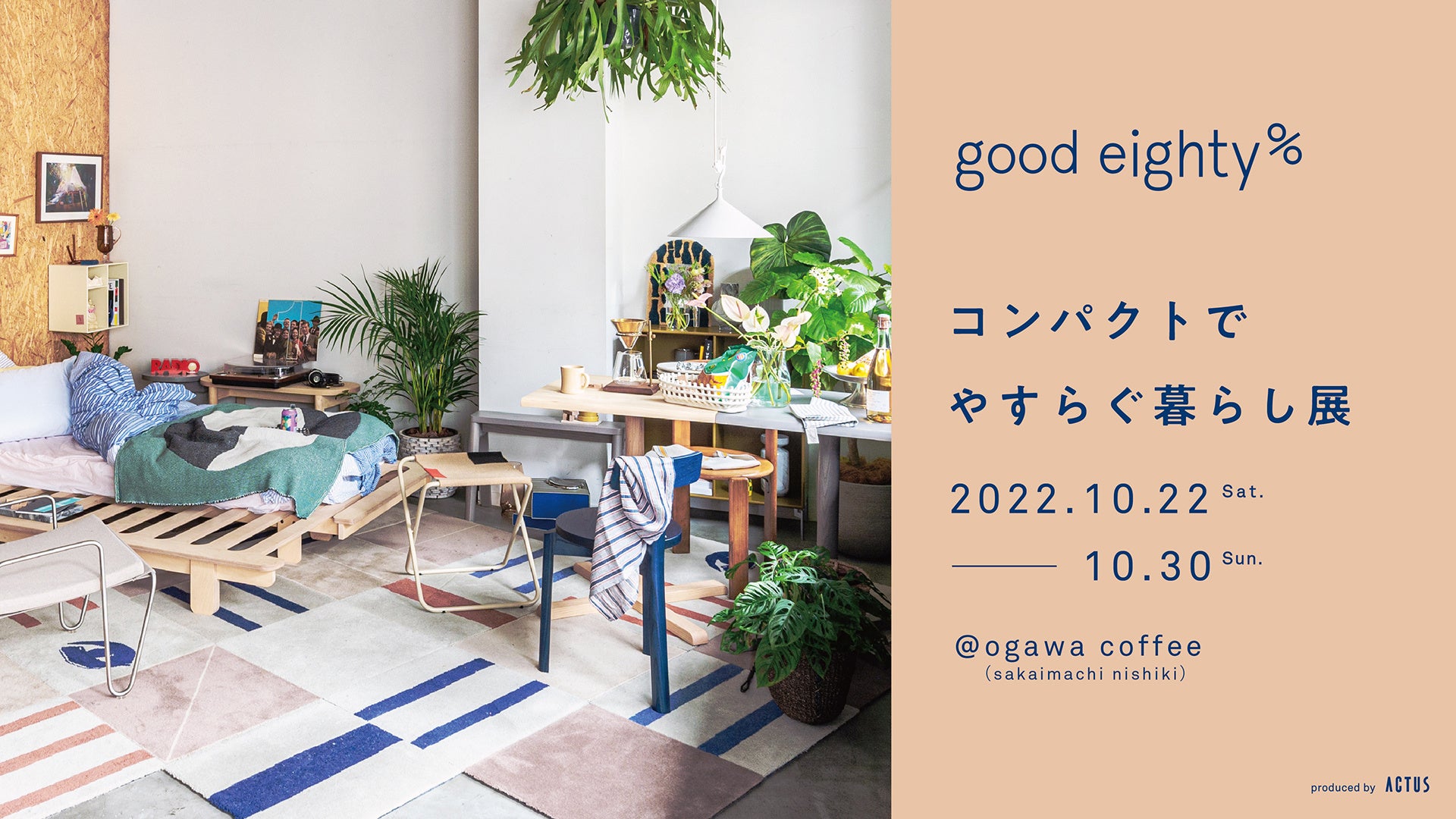 アクタスオリジナルブランド“good eighty%”ポップアップイベント「コンパクトで やすらぐ暮らし展」を2022年10月22日(土)~30日(日)まで京都・小川珈琲 堺町錦店にて開催。