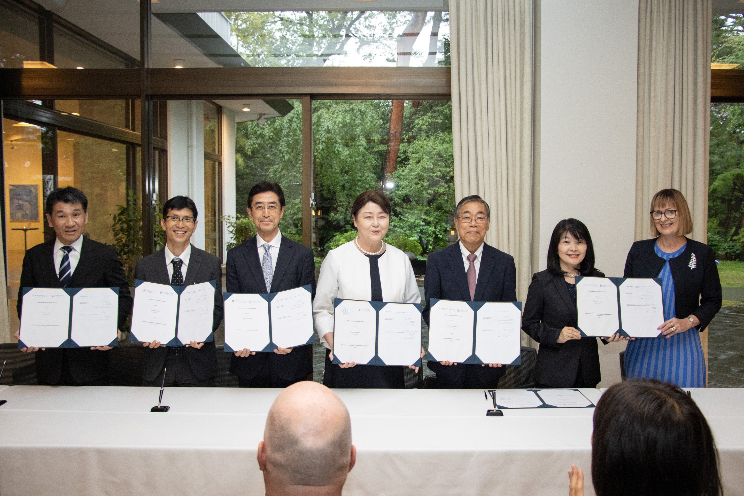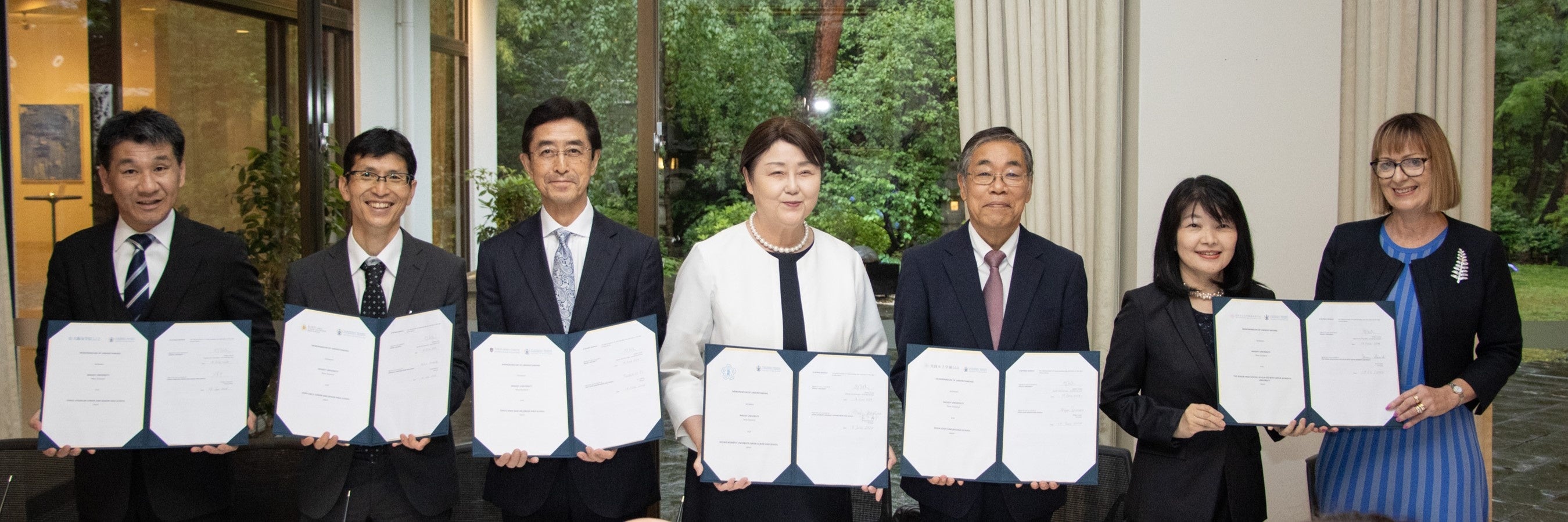 マッセイ大学(ニュージーランド、パーマストンノース、国立総合大学)は、大阪女学院中学高等学校、光塩女子学院中等科・高等科、昭和女子大学附属昭和中学校・昭和高等学校、実践女子学園中学校高等学校、東京女子学院中学校高等学校、日本女子大学附属高等学校と提携し、「教育協力に関する協定」を締結しました。なお、6月18日(火)在日ニュージーランド大使館(東京都渋谷区)にて、訪日中のクリストファー・ラクソン・ニュージーランド首相の立ち合いのもと、マッセイ大学および各学校の代表者が参加し、覚書の調印式を開催しました。