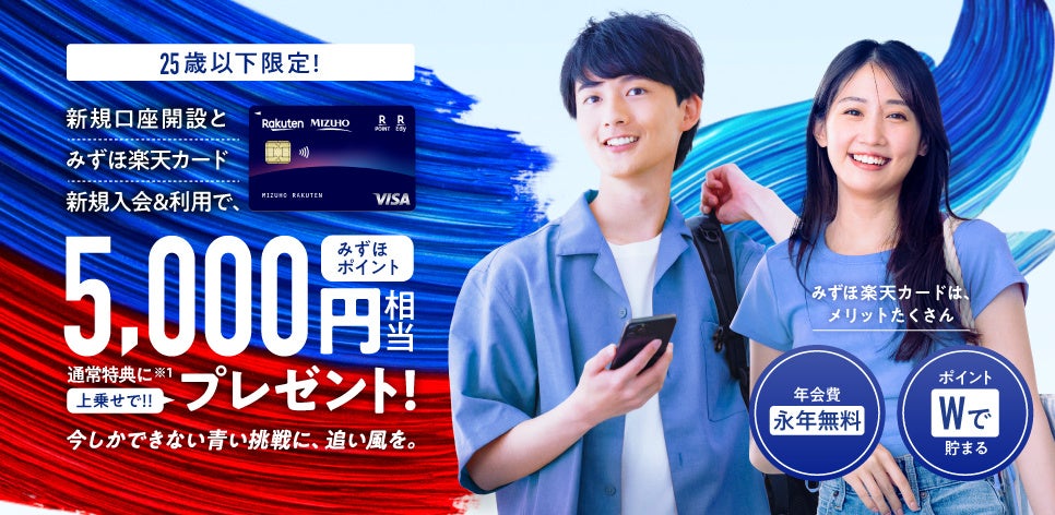対象:みずほ楽天カード申込時点で、18歳以上25歳以下の個人のお客さま
