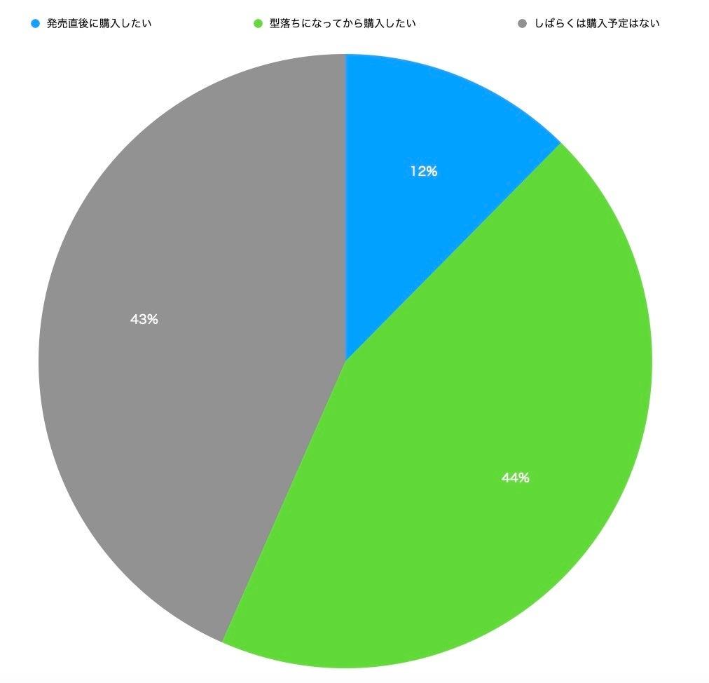 逆に発売直後に購入したいと思っている方は全体12%とかなり少ない結果となっています。