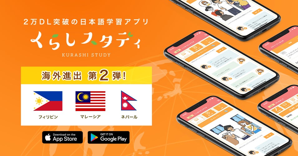 フィリピン・マレーシア・ネパールに初進出!2万DL突破の日本語学習アプリ「くらしスタディ」が海外進出