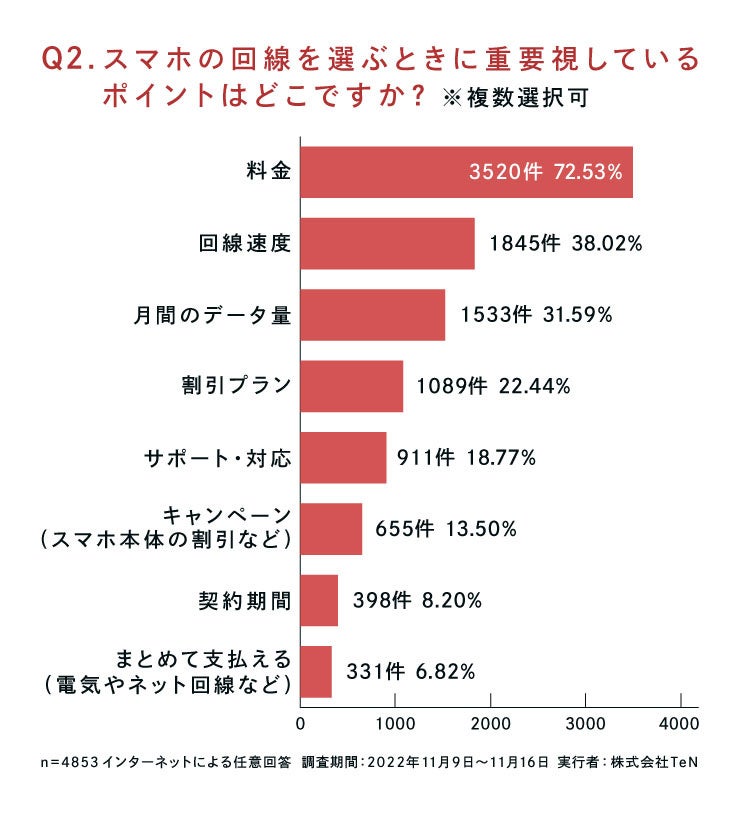 Q2.スマホの回線を選ぶときに重要視しているポイントはどこですか?