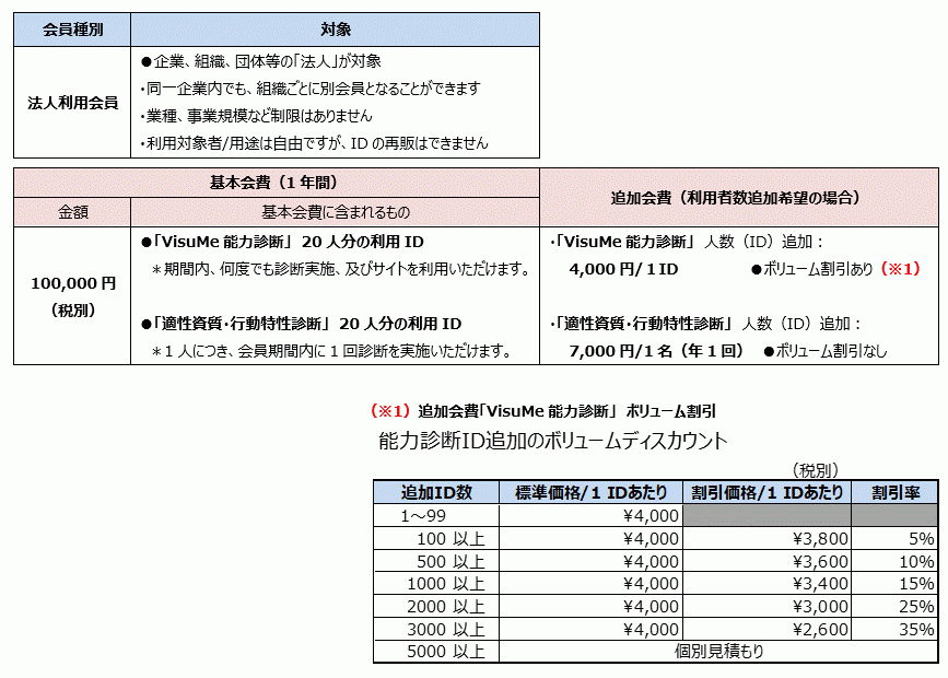 VisuMe(IT総合能力診断サービス)利用会員会費体系変更のお知らせ