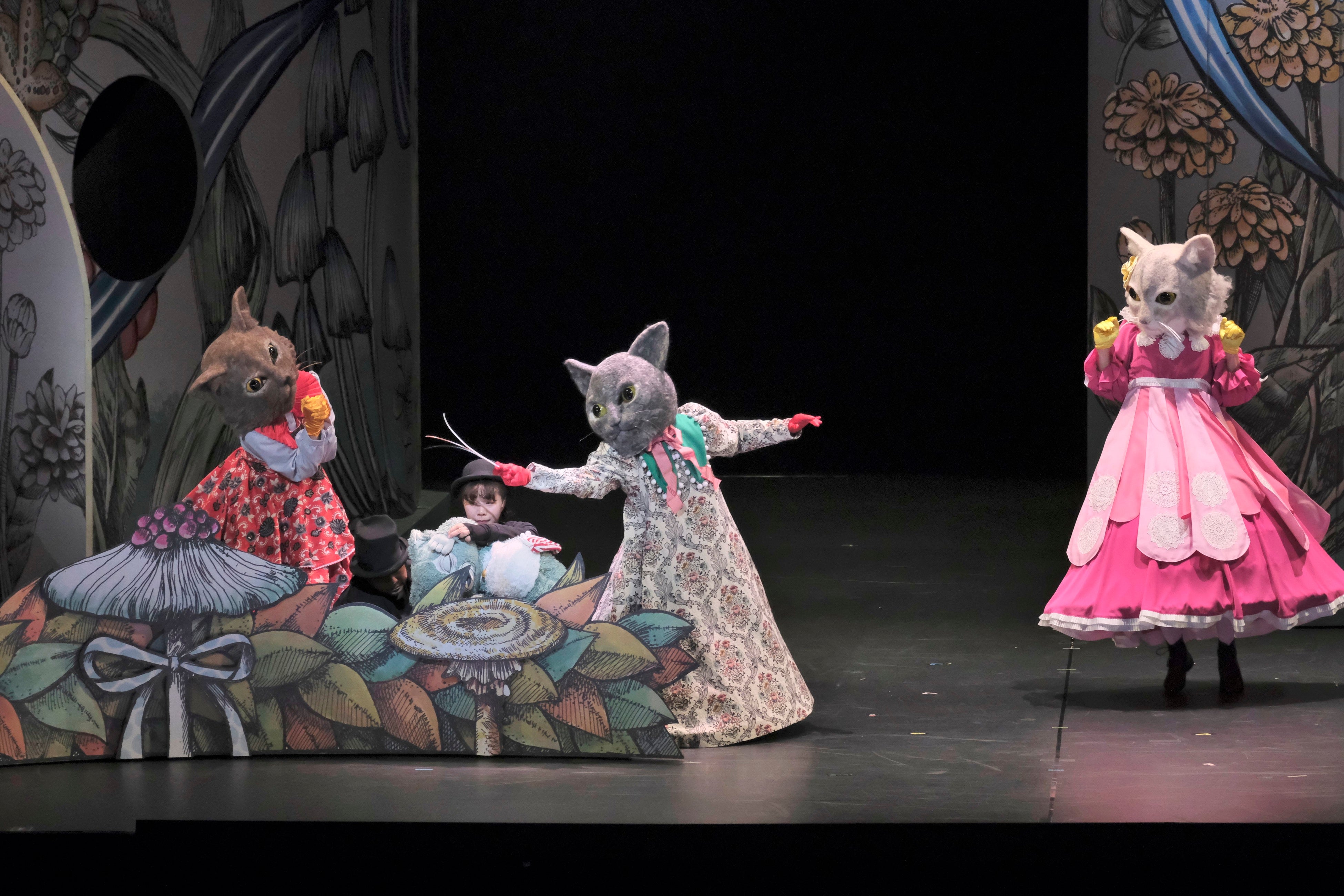 絵本から飛び出てきたような舞台美術が広がる中、ニャンコやアノマロなど表情豊かな人形たちと、ダンサー扮する愛嬌たっぷりの猫たちが、あたたかい言葉や楽しい歌と踊りで、優しくも切ない世界を描き出します。