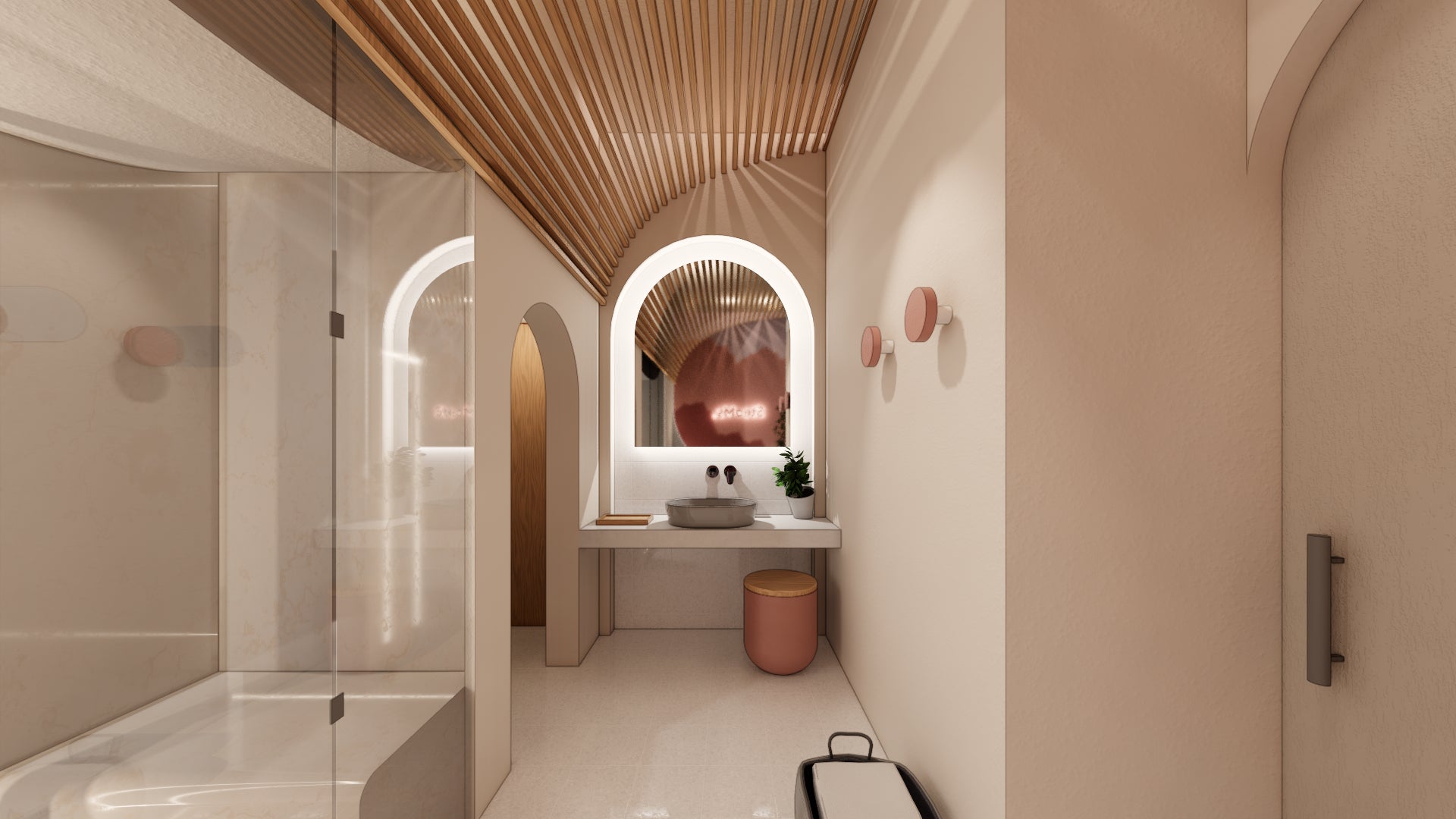 有機的な曲線と色でデザインされたインテリア。