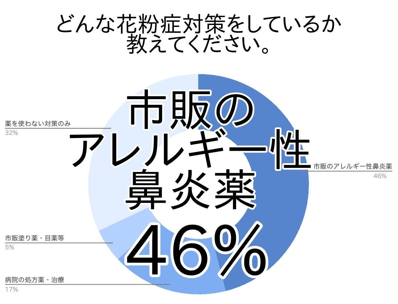 アンケートで最も多かったのは花粉症の際に市販のアレルギー性鼻炎薬を服用すると答えた方は5割弱(46%)でした。
