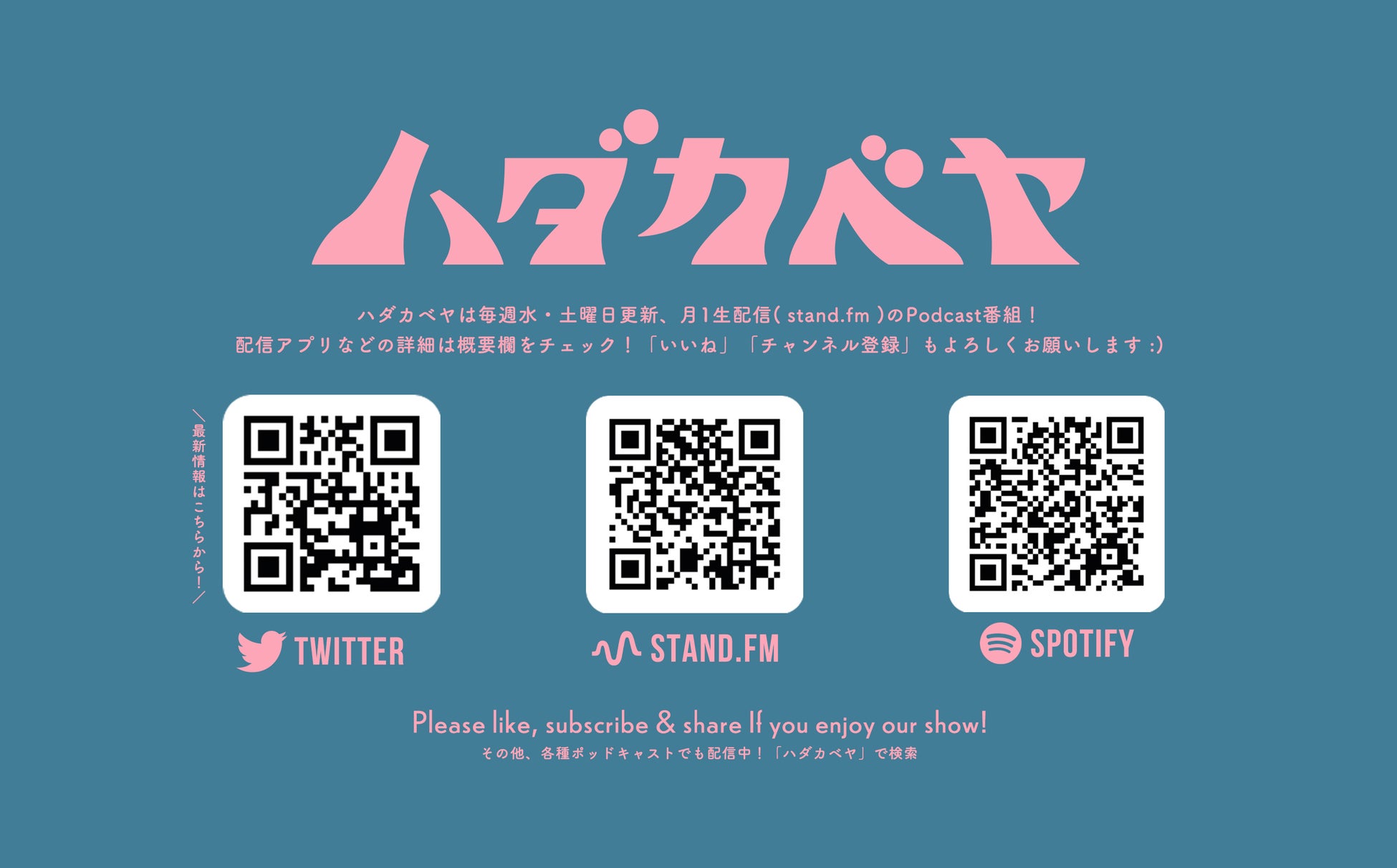 apple podcast: https://podcasts.apple.com/jp/podcast/%E3%83%8F%E3%83%80%E3%82%AB%E3%83%99%E3%83%A4/id1615709790