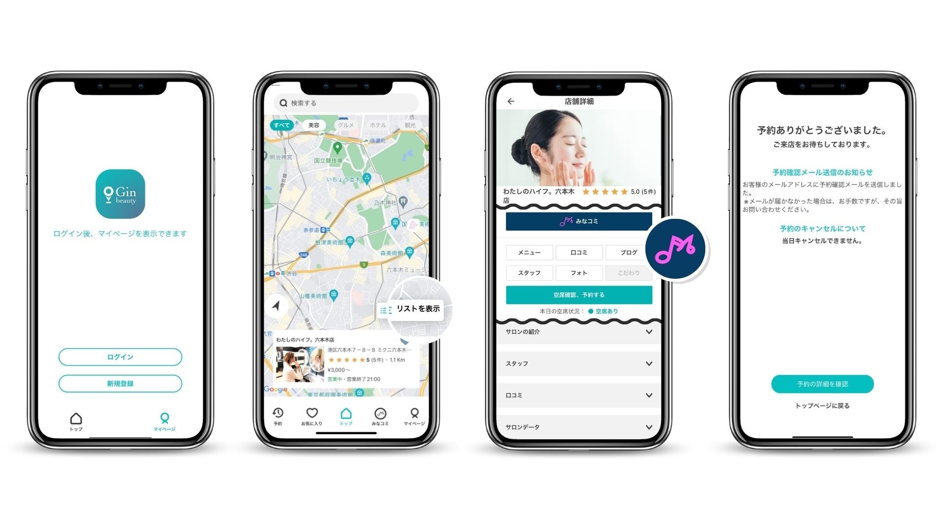 ユーザー登録、店舗掲載料0円!総合予約アプリ「GiN」