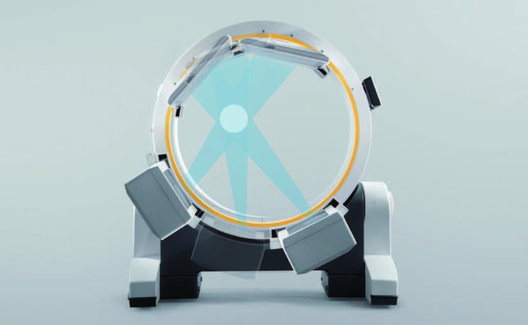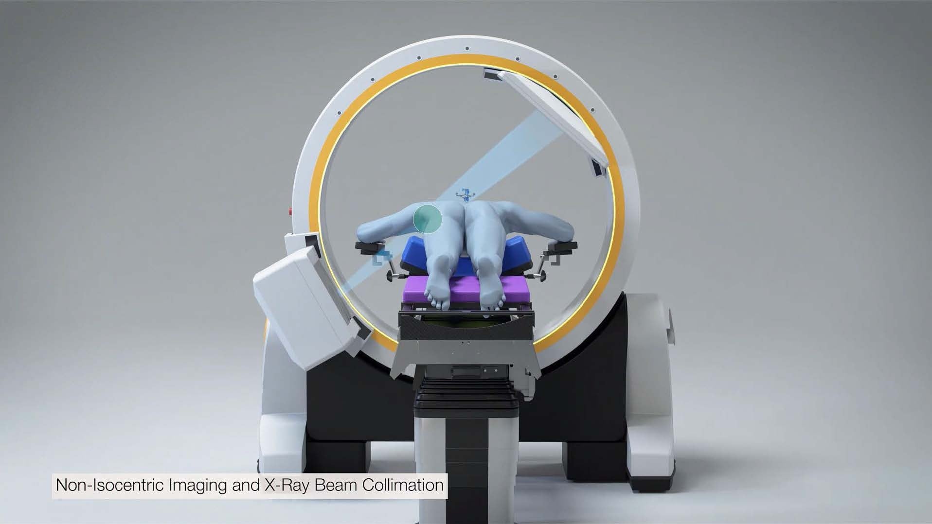 X線管と検出器が、大口径ガントリの同心円上で互いに独立して360度可動する構造により、広いフリースペースを確保しながら、多様な2D撮影と正確な3D画像の構築が可能です。