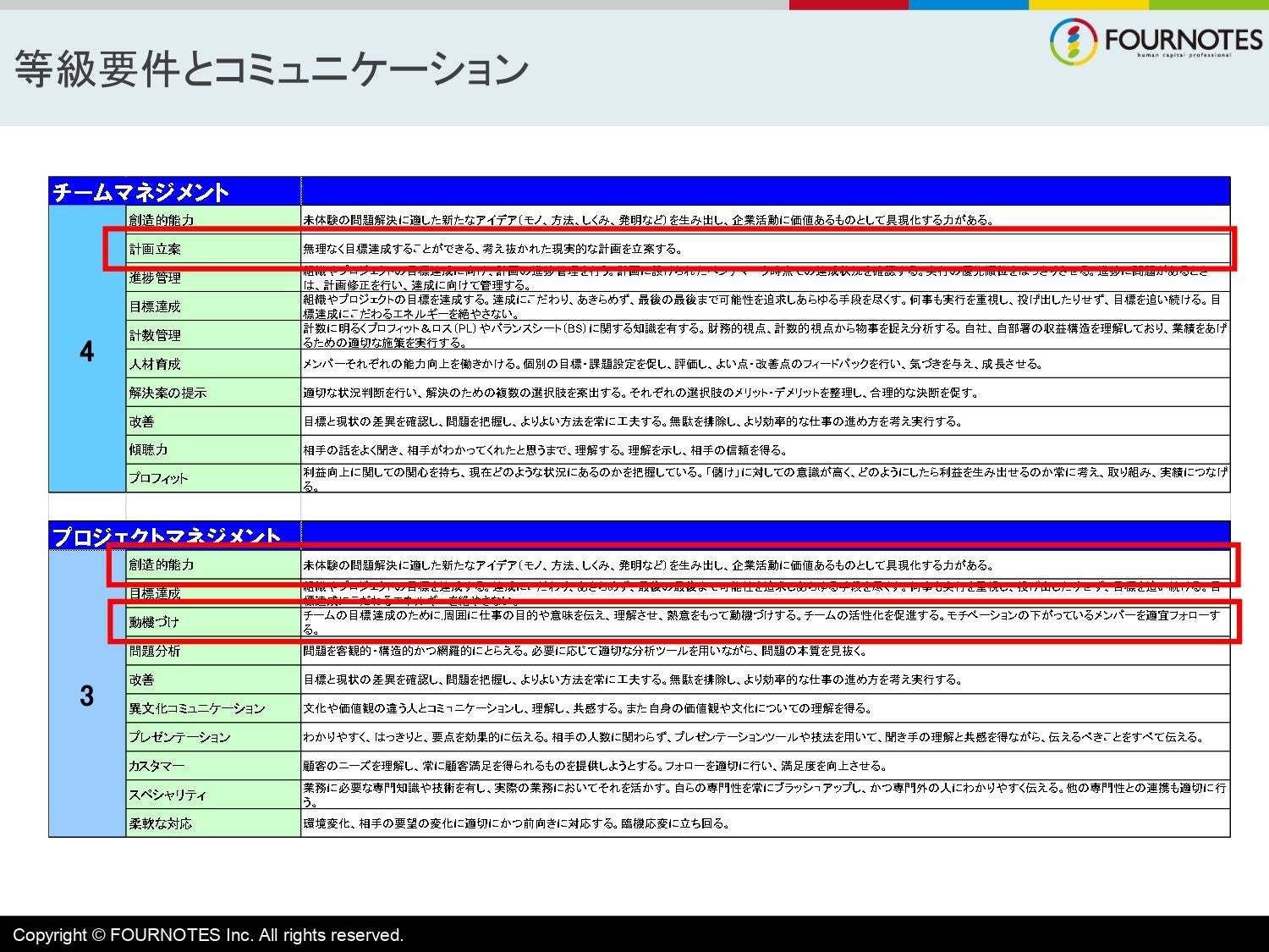 これは『人事の超プロが明かす評価基準』(三笠書房)で紹介した、4等級や3等級はこれだけのコンピテンシーが必要だよね、というものの抜粋です。