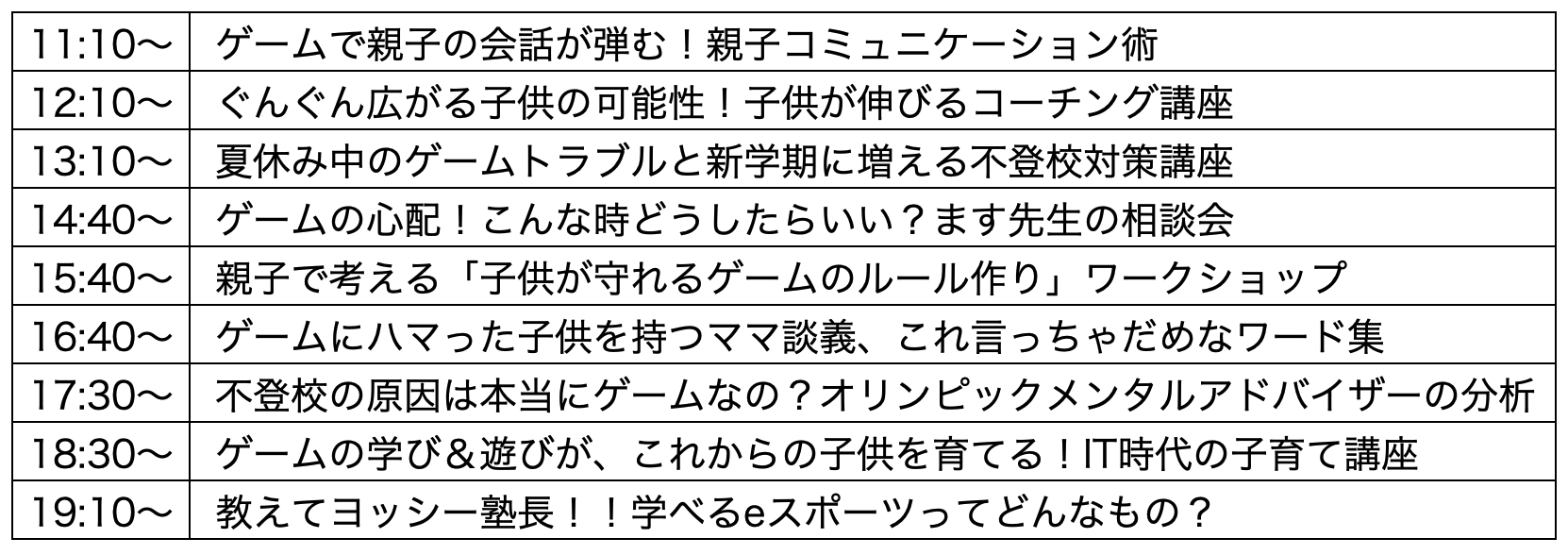 「ゲームって身体に悪いんじゃないかしら?」「依存症になっちゃうんじゃ?」 eスポーツ、ゲームに対してそんなネガティブイメージの方も多いと思います。 でも、正しくつきあえばコミュニケーション能力の向上や、意外な子どもたちの才能を開花できるツールでもあります。当ブースでは、そんな親御さんの疑問、質問、悩みにおこたえします。