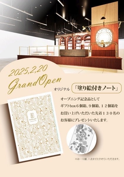 『Huffnagel』(フフナーゲル)は、渋谷 東急フードショーに新店舗をオープン致します。オープン記念として、『Huffnagel』オリジナル塗り絵付きノートを先着130名の方にプレゼント致します。