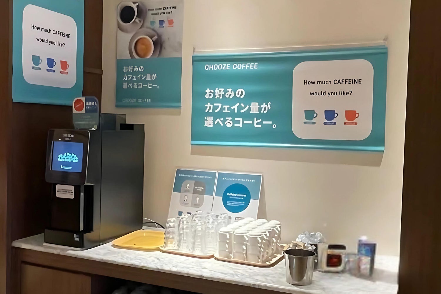 ストーリーラインは、2024年9月3日(火)から、ホテルやオフィス、コワーキングスペースやショールームなどで、「カフェインコントロール」しながら、美味しいコーヒーが飲める「CHOOZE COFFEE for BIZ」を提供開始しました。大観荘ではこの専用コーヒーマシンをいち早く導入。宿泊客の体調管理はもちろん、睡眠の質や生産性向上を実現し、顧客体験の向上を推進しています。