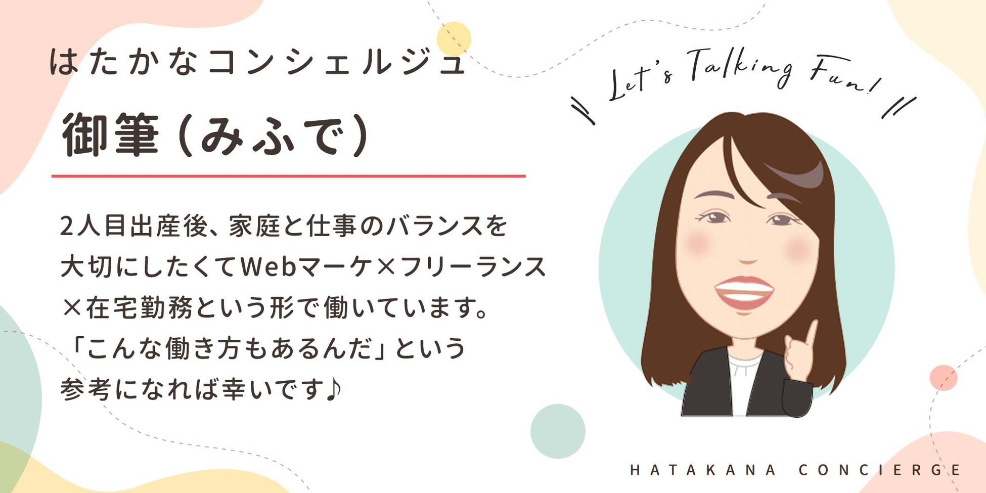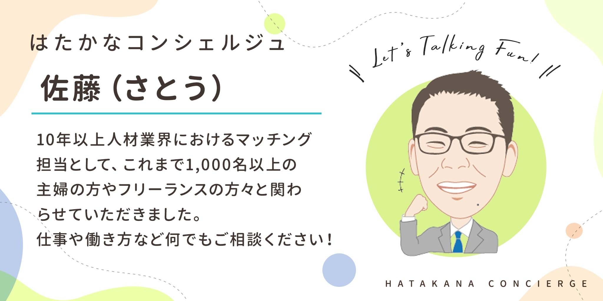 フリーランスで働く先輩ママワーカーや、IT・Web業界へのマッチングのスペシャリストなど、相談内容に応じて適任のコンシェルジュがアドバイスします。多数のママスタッフが活躍している「はたかな」だからこそできる共感、そして企業側のニーズをも把握したアドバイスが可能です。