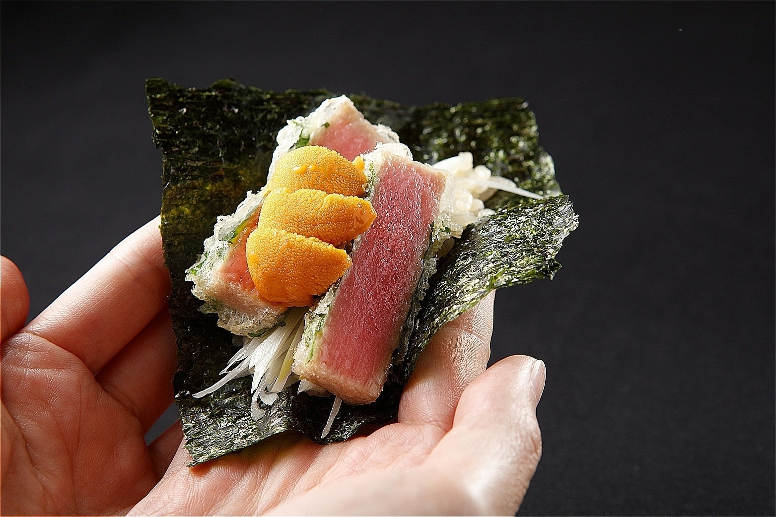 ・個性派鮨 トロと卵黄の太巻き 濃厚赤出汁ソース
