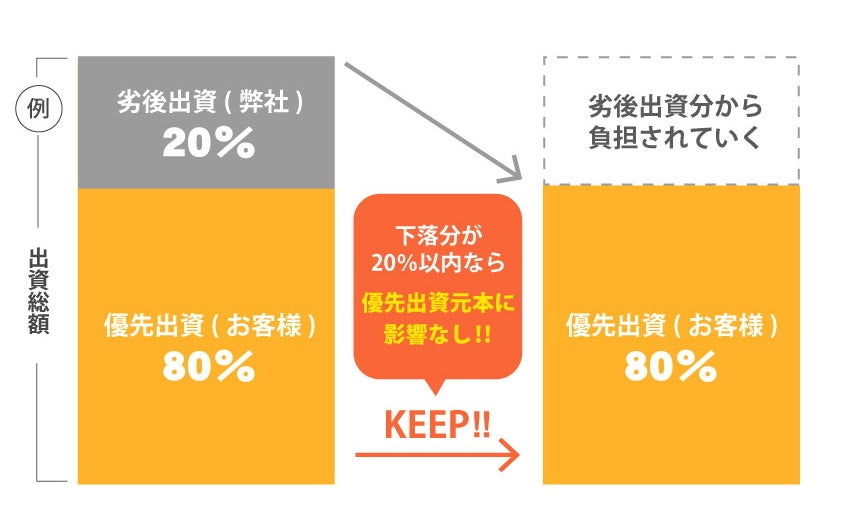 - 優先劣後構造で元本割れリスクを軽減