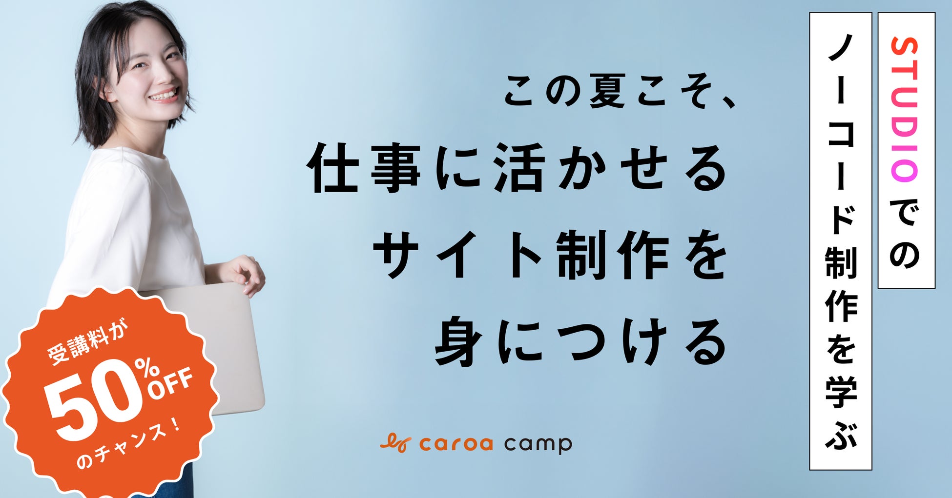 ノーコード(STUDIO)でWeb制作を学ぶパーソナルジム「カロアキャンプ」を運営する株式会社caroa(所在地:東京都港区、代表取締役CEO:葉栗 雄貴、以下カロア)は、2024年8月1日から25日までの期間限定で「夏休みスタートダッシュキャンペーン」を実施します。このキャンペーンでは、抽選で選ばれた2名の方に最大15万円の受講料割引を提供し、AI時代に必要不可欠なWeb制作スキルの習得を支援します。