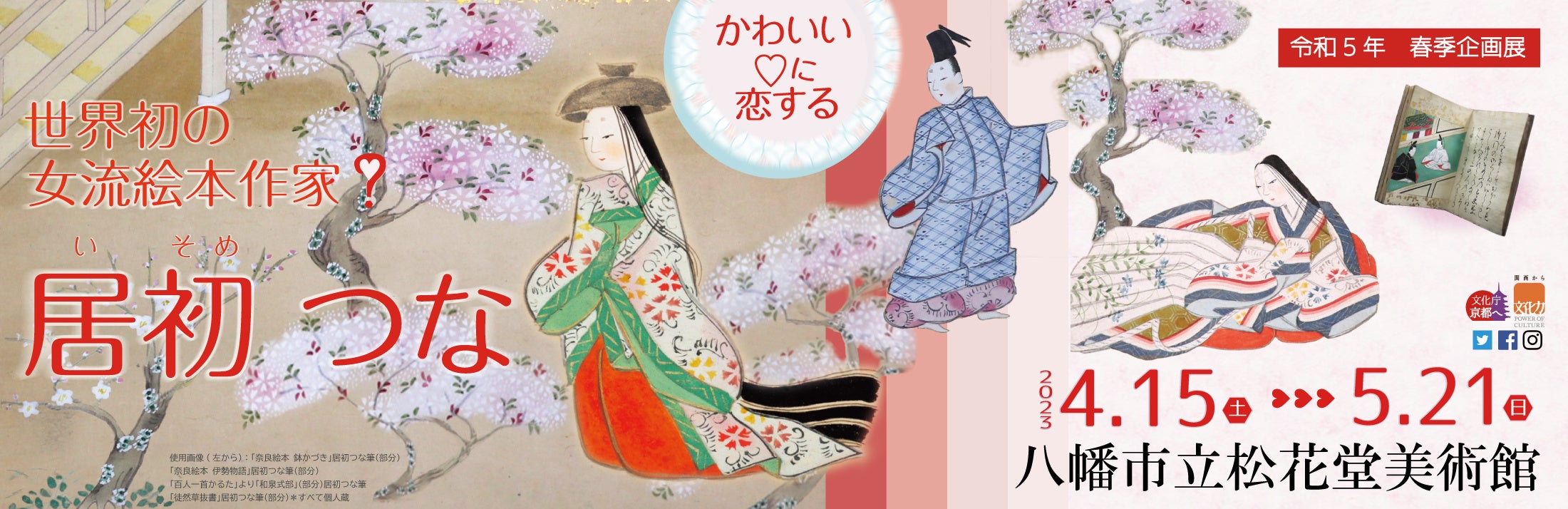 八幡市立松花堂庭園・美術館にて【令和5年 春季企画展 世界初の女流絵本作家?居初つな】を開催します。17世紀後半に女性の絵本作家がいたことは珍しく、世界初の女流絵本作家となるかもしれません。展覧会では、近年ようやくその姿がわかってきた「居初つな」の作品を中心に、その魅力をご紹介します。