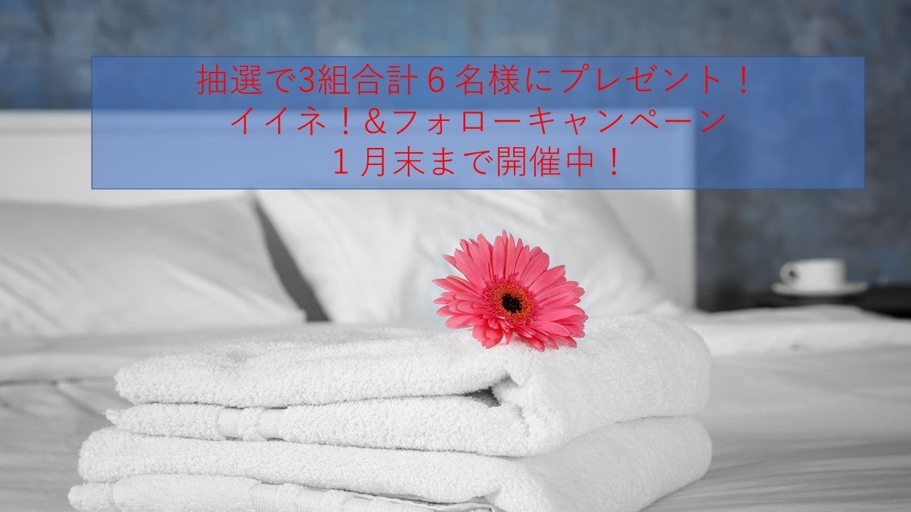 当社のFacebook公式アカウントに【イイネ&フォロー】をしてください。【イイネ&フォロー】していただいた方の中から抽選で、ペア宿泊券を3組様、合計6名様にプレゼントいたします。