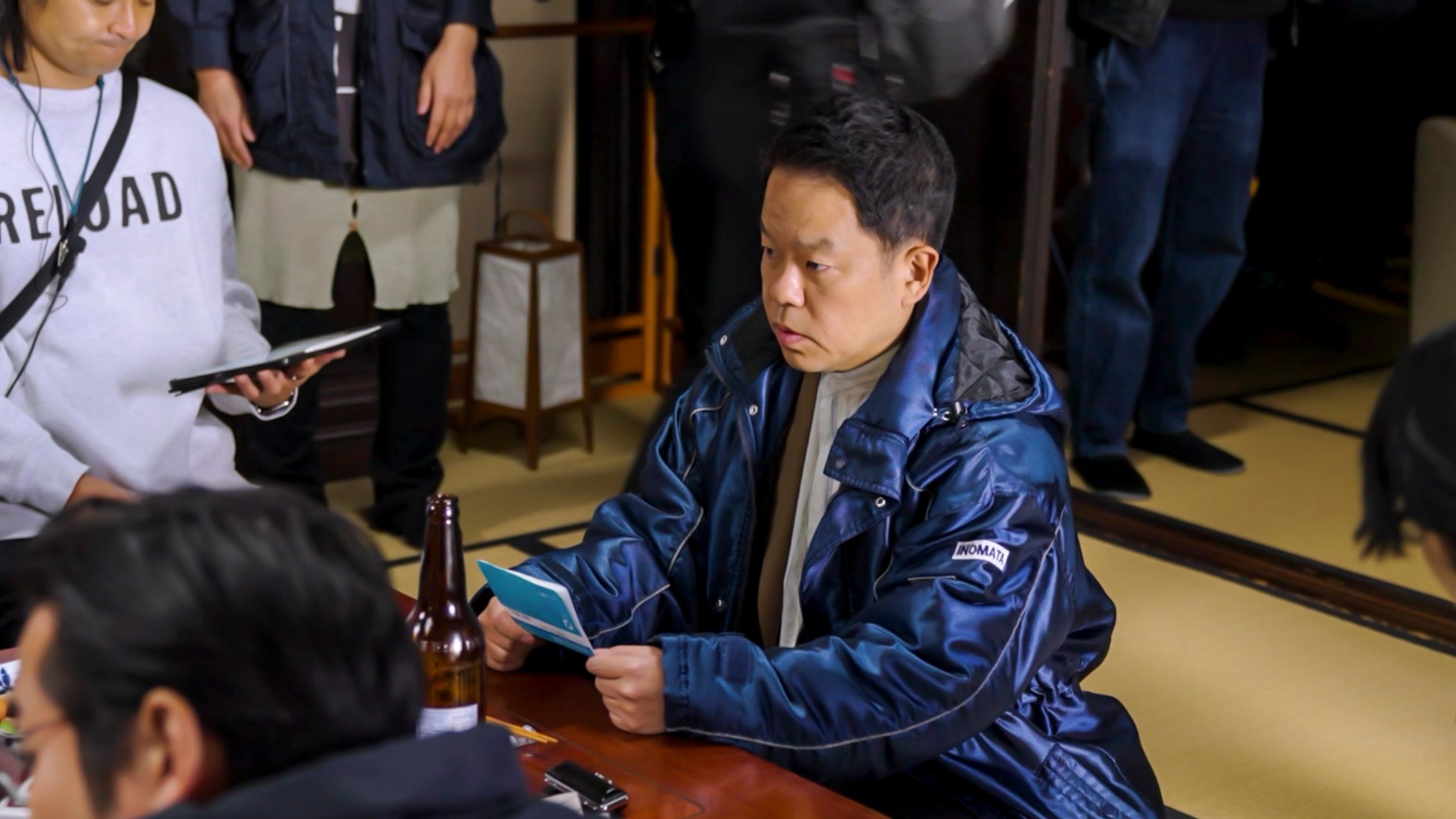 立派な日本家屋に集まったのは総勢9名の親戚役のキャストの方たち。いつもとは打って変わってどこか緊張気味の津田さんは、カメラが回る前から通帳をじっと見つめ、「通帳の人」になりきっている様子。家族会議の中、セリフを掛け合いながらカメラを回していきます。ああだこうだと四方八方から説得される津田さん。泣きそうな声で訴えたり、苛立ちを顔の表情で表現したり、しゅんとしょげたり、ドヤったり、オロオロして慌てふためいたり……多彩な表情を見せる、さすがの津田さんなのでした。
