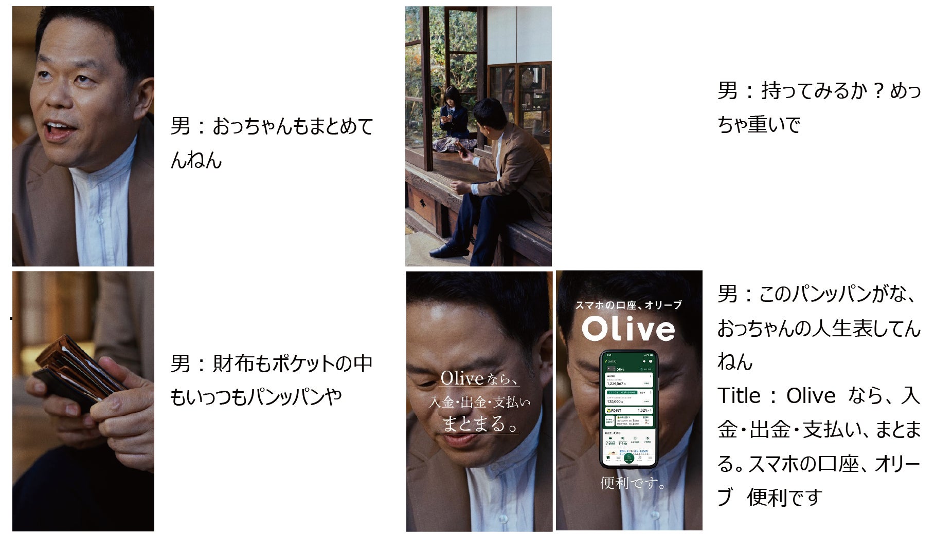 三井住友銀行のお得なサービス「Olive」の新WEB-CMで主演を演じる、大人気お笑いコンビのダイアン・津田さん。ドラマ仕立てなCMで、毎朝の通帳記帳を欠かさない性分を、親戚一同に説得されるという役を演じる。繊細な表現と自然体な演技に定評がある津田さんの熱演を見逃さないでください。