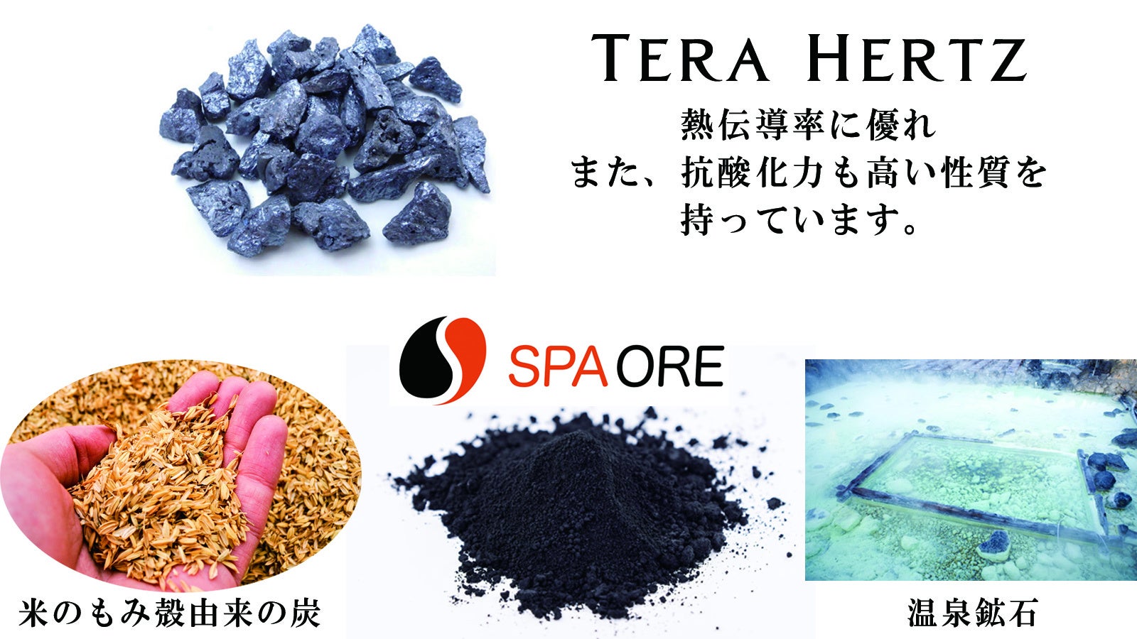 “テラヘルツ人工鉱石”は高い熱伝導率と抗酸化力に優れ、そこに“SPAORE”からの輻射熱を加えて、「素早く自然な暖かさ」の実現を目指しました。