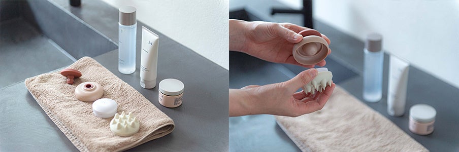 頭、首、身体をそれぞれセルフケアする3種類リリース。まるで手指で揉んでもらっているような、手放せない心地よさを追求。いろいろな役割をもって日々を忙しく過ごす女性が、日々の習慣に落とし込みやすく続けられるように、合間1分でケアできるような簡単でしっかり気持ちいいプロダクト設計。