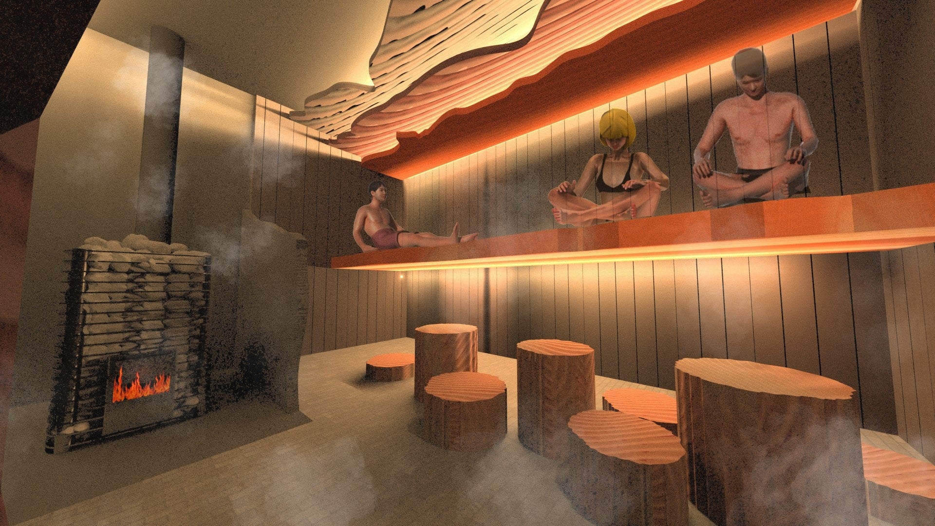 サウナストーブはサウナの本場フィンランドのNarvi社。セルフロウリュウを採用し、女性でも気持ちよく入っていただけるサウナを目指します。