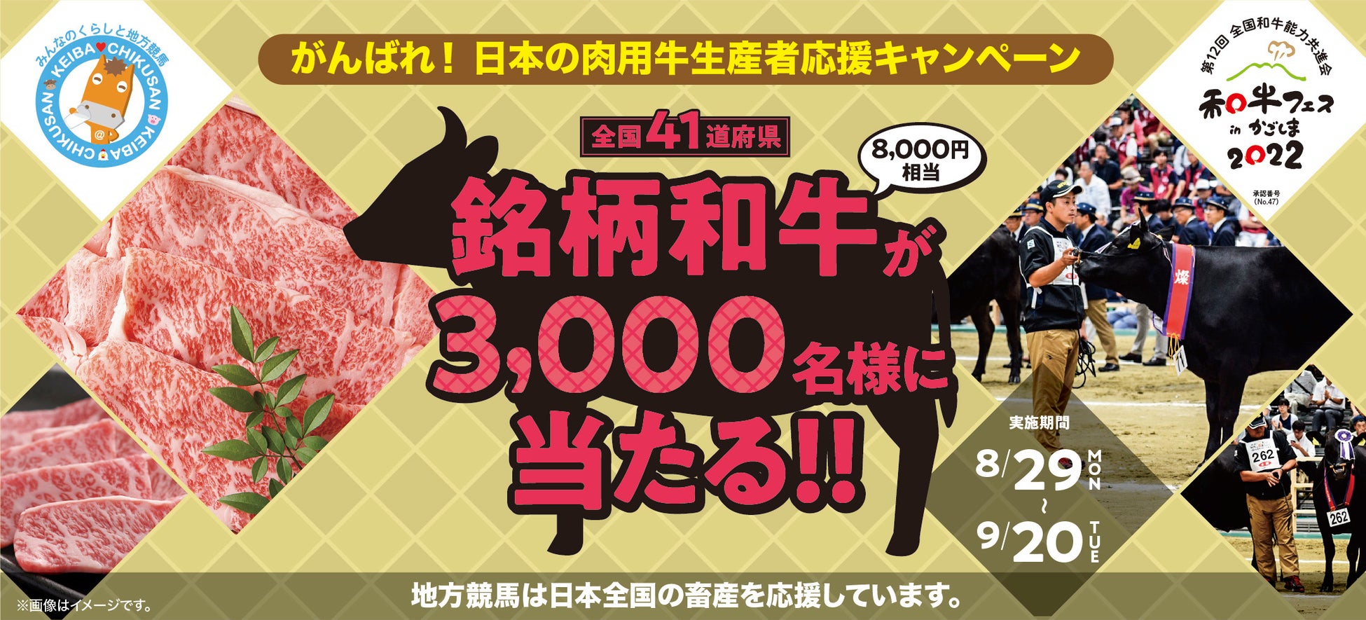 本キャンペーンは、多くの消費者に牛肉の消費を促し、全国の肉用牛生産者を応援するとともに、地方競馬による畜産振興や社会貢献について周知を図ることを目的としたものです。