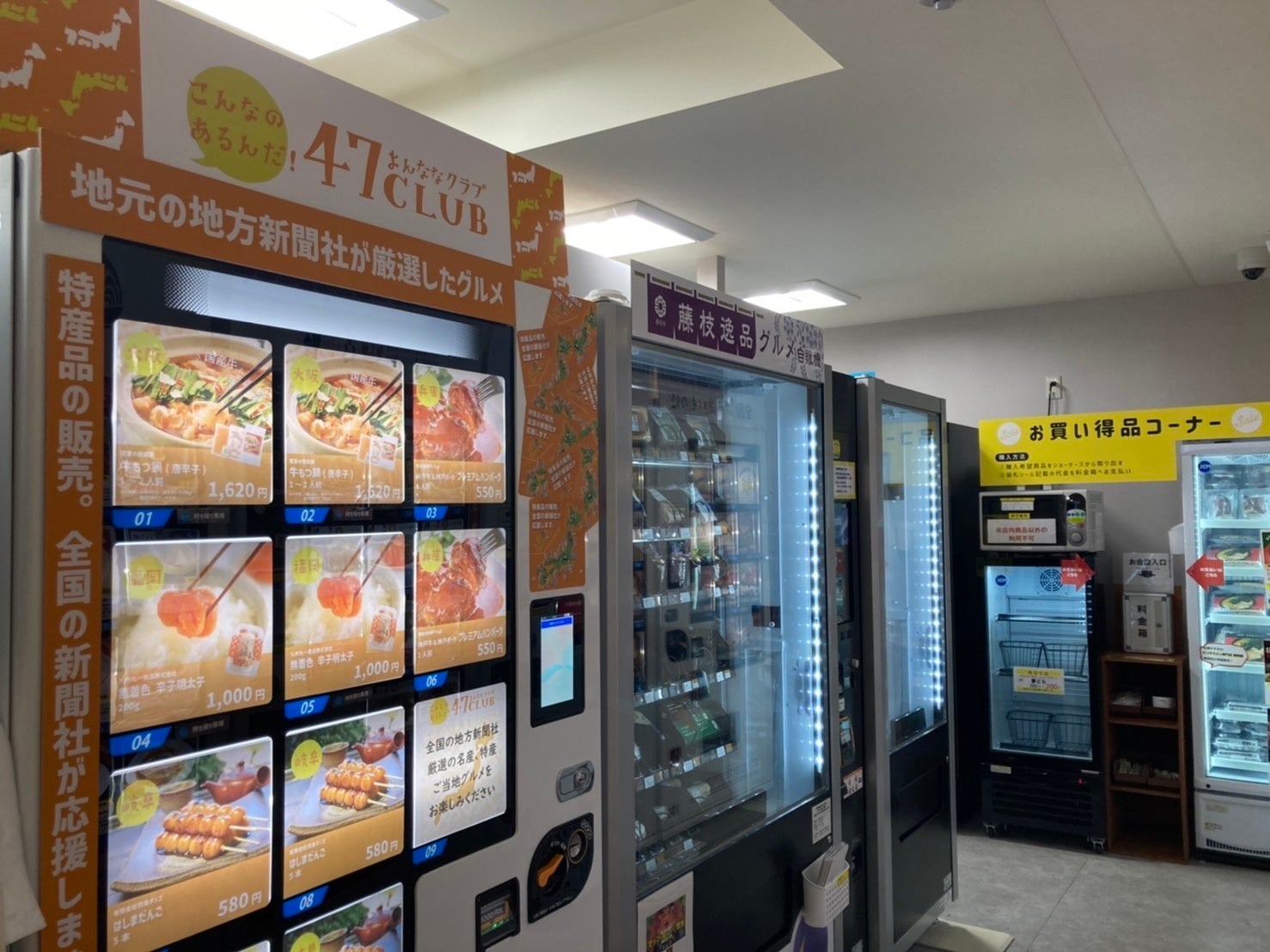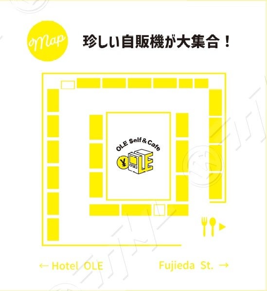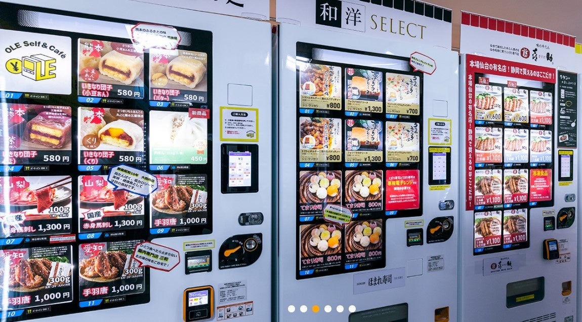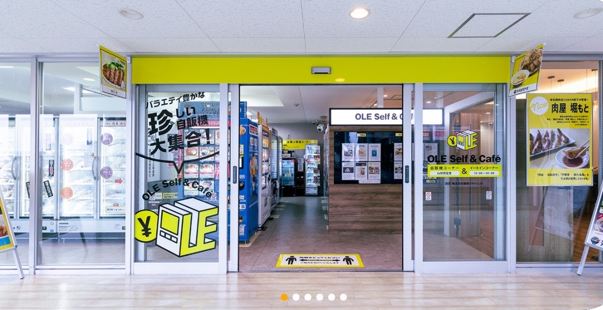 「OLE Self&Café」では全部で23台の自動販売機を設置しております。常に新しい商品を探して入れ替えを実施しているため、一度来たことがある方も、何度でも楽しめるようになっております。日本全国の有名店の味が自動販売機で24時間購入可能。また、イートインコーナーも併設しており、その場で食べることも可能です。(※テイクアウト専用商品も有り)