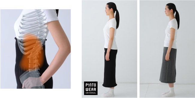 多くの障がい者と関わるなかで座っている際の ①姿勢の崩れ、②衣類がいつのまにかずれる、③身体が冷えやすい などのお悩みがありました。この問題は一般の方でも同じではないのかと考え開発されたのが「肋骨巻きズボン(スカート)」です。
