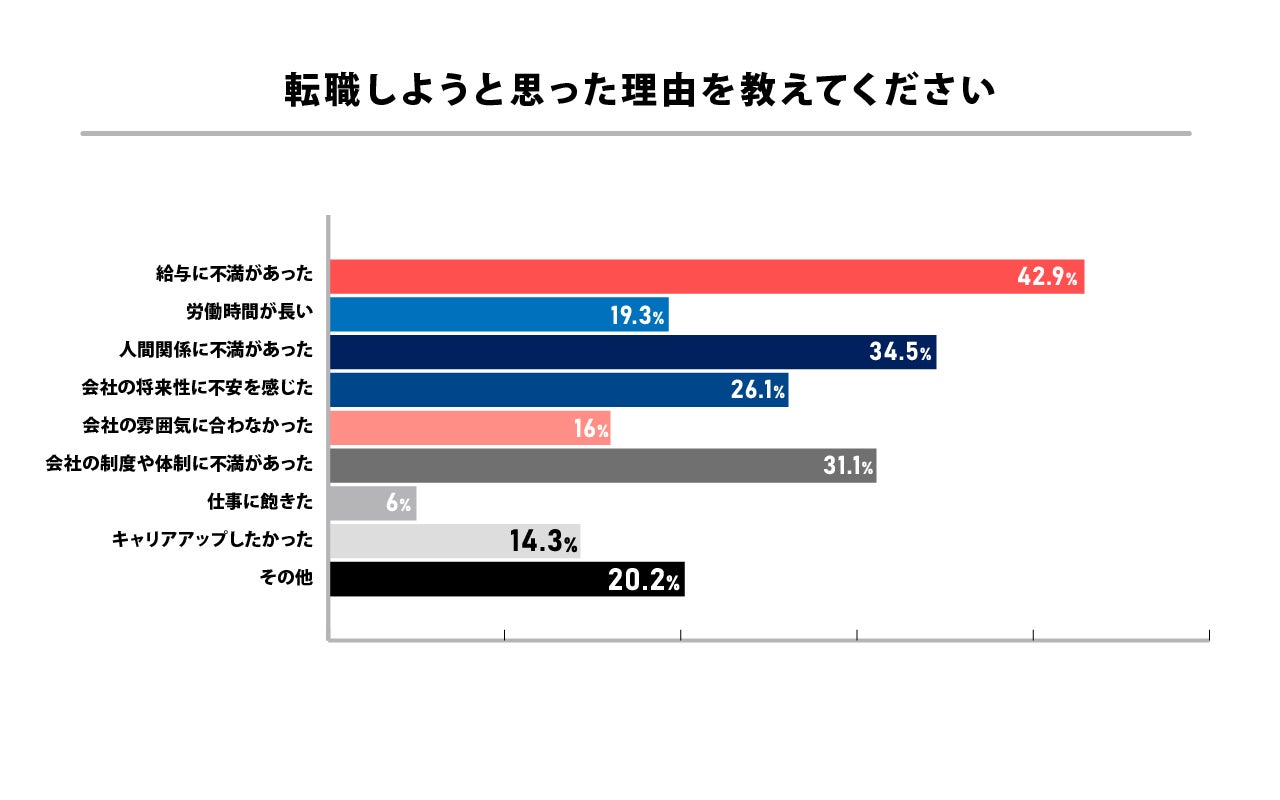 最も多い転職理由は「給与に不満があった」。その他の転職理由は?