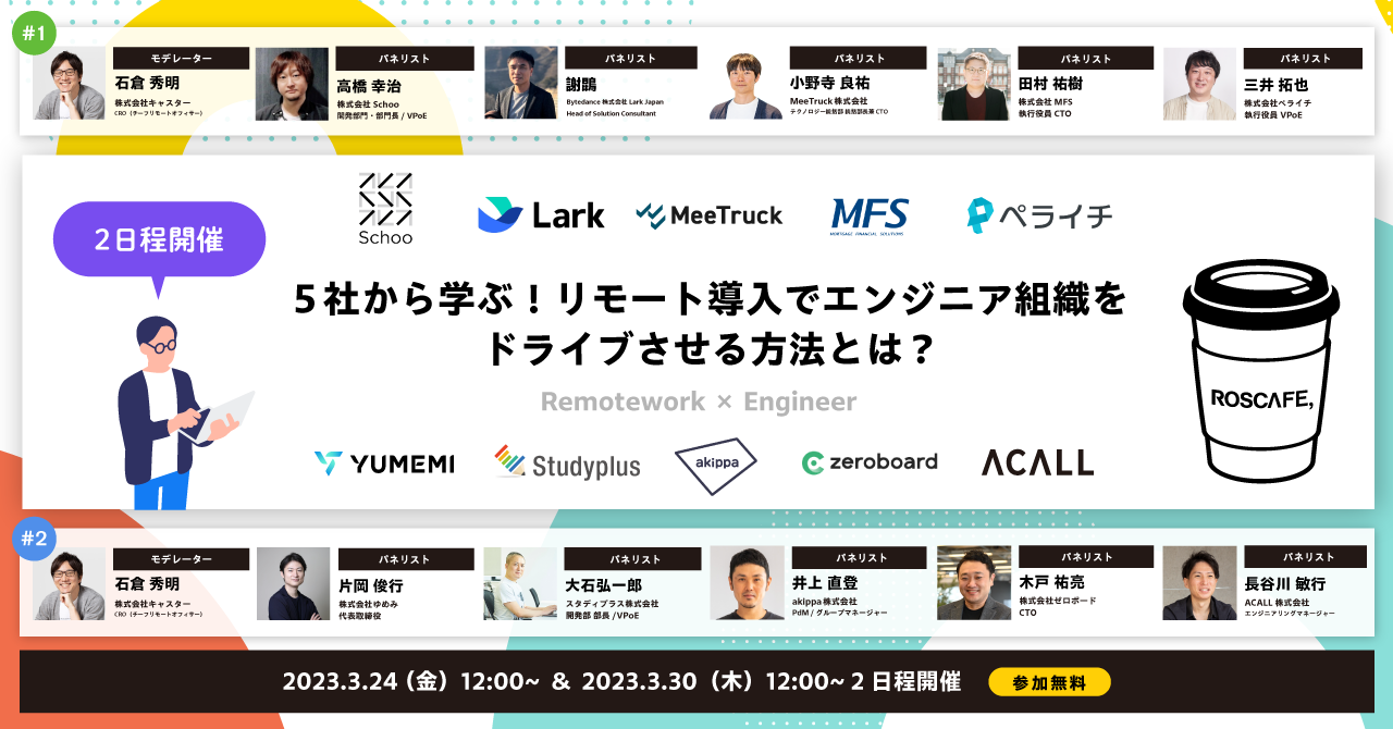 エンジニア専門エージェントROSCA株式会社、リモートワークがもたらすエンジニア組織へのメリットを話題の5社が語るオンラインイベントを2日程で開催