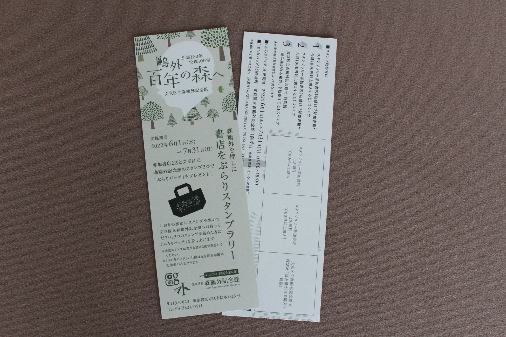 ※ スタンプ台紙となる「鴎外没100年記念しおり」は、参加書店、文京区立森鴎外記念館で差し上げます。