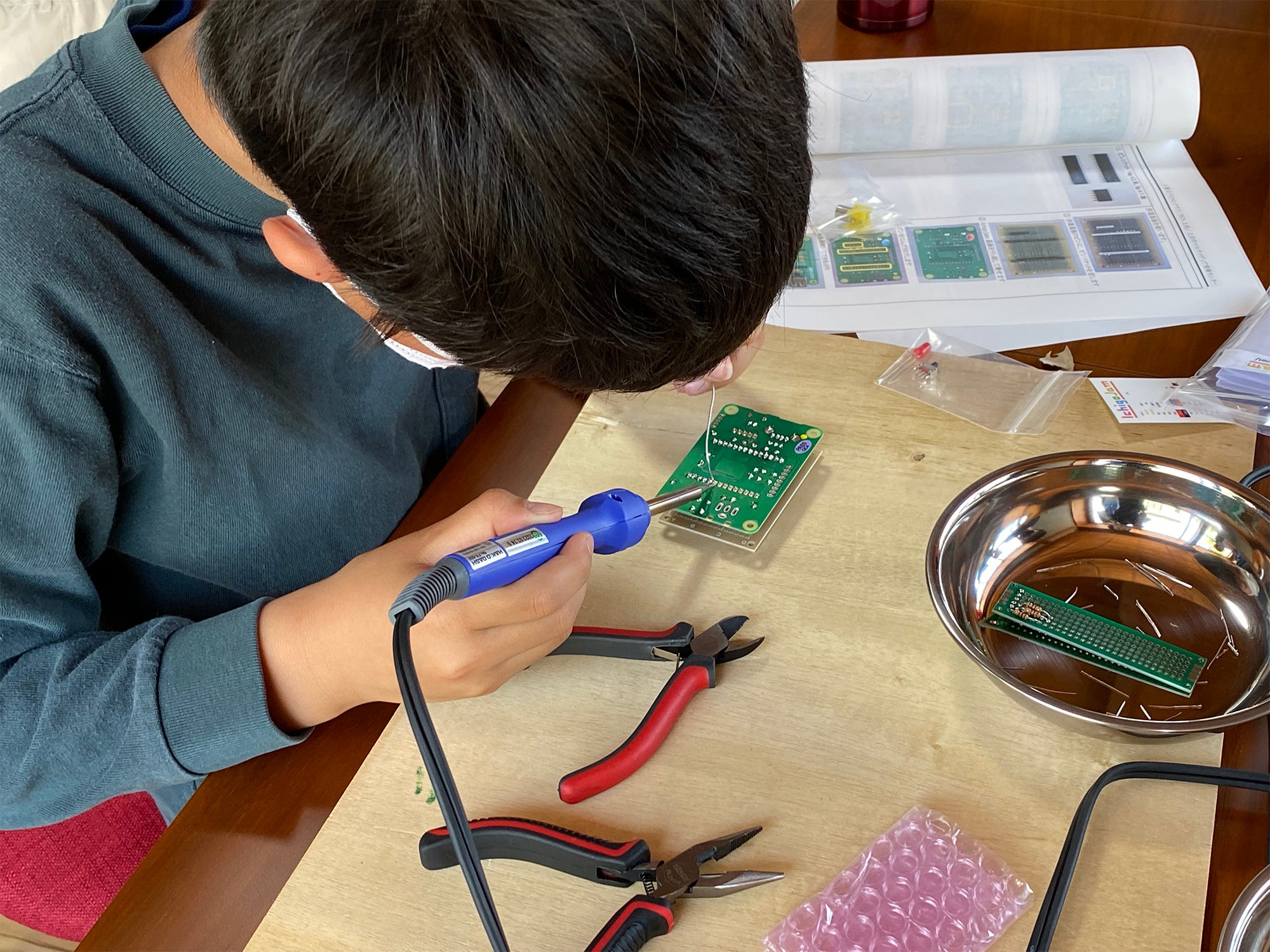 「軽井沢ICTクラブ」は、IT活用を通じた多世代交流や地域課題の解決を目的に発足しました。軽井沢町の小学校や中学校の子ども達を対象に令和4年4月より始動し、令和5年3月までに計8回の活動を予定しています。5月と7月の活動ではIchigoJam®️を教材にして、はんだづけとプログラミングの講座を実施し、軽井沢在住の子ども達が参加しました。今後、8月と9月の各回も同様にIchigoJam®️を使用した講座を実施し、新たに6名の子ども達が参加する予定です。この他に、10月以降は信州大学工学部の協力のもと、データサイエンス講座を予定しています。