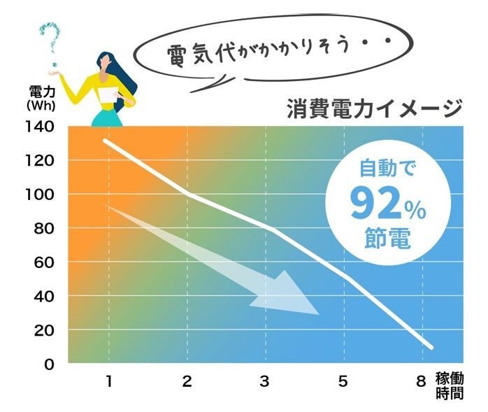 内部のゴミの量に応じて電力を調整するオート電力調整AIを搭載。内部温度が50度になると熱を再利用するので、最低限の電力でしっかりと乾燥させることができます。また開始後8時間で送風モードに自動で切り替わり、待機電力レベルの10Wまで電力を抑えるエコ仕様です。