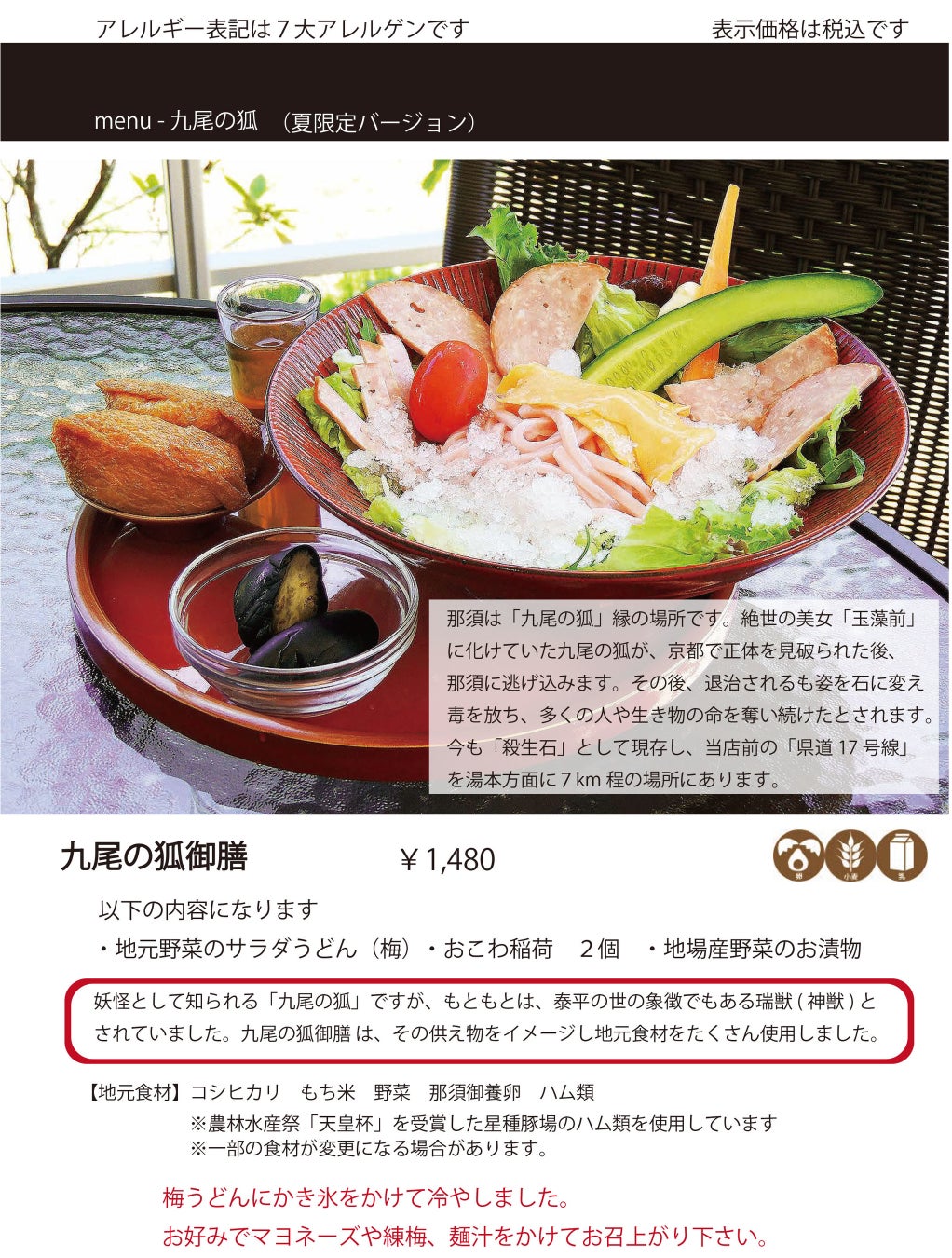 ~ レストラン那須高原バルでは九尾の狐御膳(夏バージョン)販売開始 ~