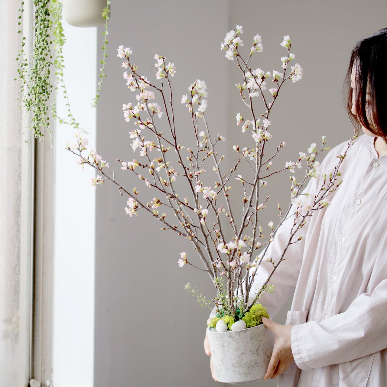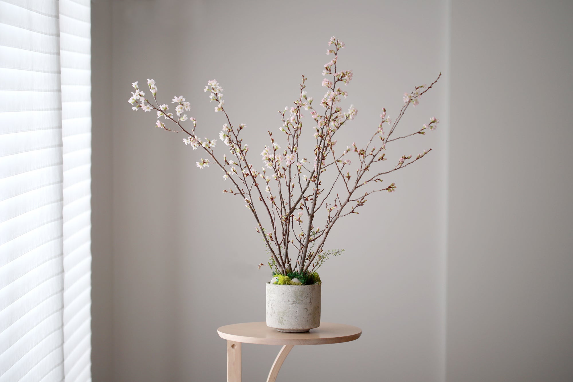 桜はつぼみ~少し花が咲いた状態でお届けしますので、満開になっていく桜をリビングや玄関に飾って楽しめます。満開の桜のあとは新緑がさわやかな葉桜を。こちらも風情があり大変うつくしいものです。自宅にいながら日本のゆたかな季節のうつりかわりを楽しめます。