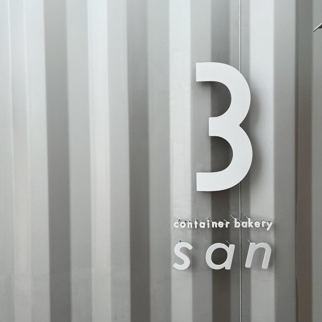 まずコンテナベーカリーのネーミングですが、全容が名前だけでは分からない曖昧な感じが良いと思い「コンテナハウスsan」にする予定だったそうですが、パン屋さんだとわかるように「container bakery san(コンテナベーカリーsan)」に。