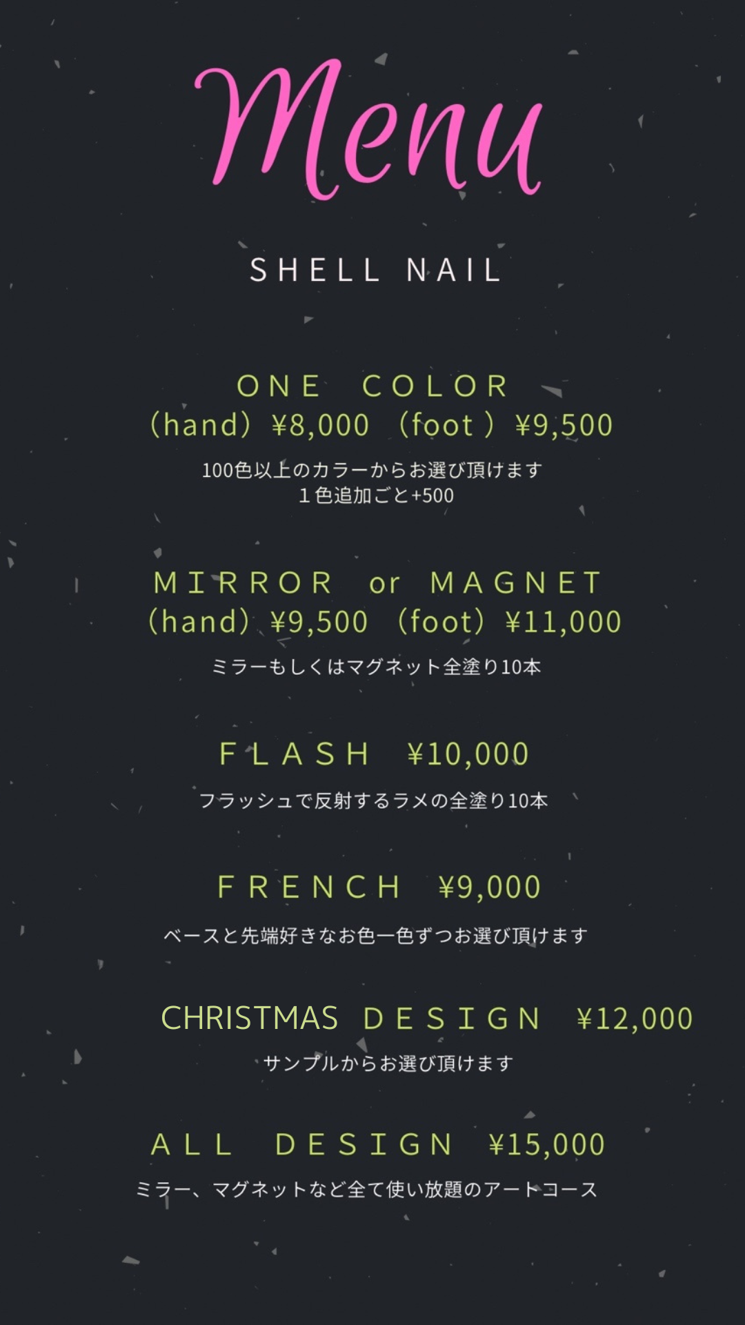予約方法:SHELL NAIL公式instagramへDMでお願いいたします。