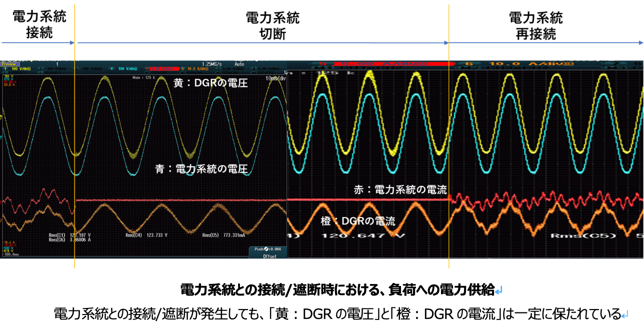 デジタルグリッドルーターを電力系統と直接接続する実験は、日本では実施したことがなく、今回が初となります。電力系統との接続環境下でも、デジタルグリッドルーターはそのパフォーマンスを十分に発揮することができました。