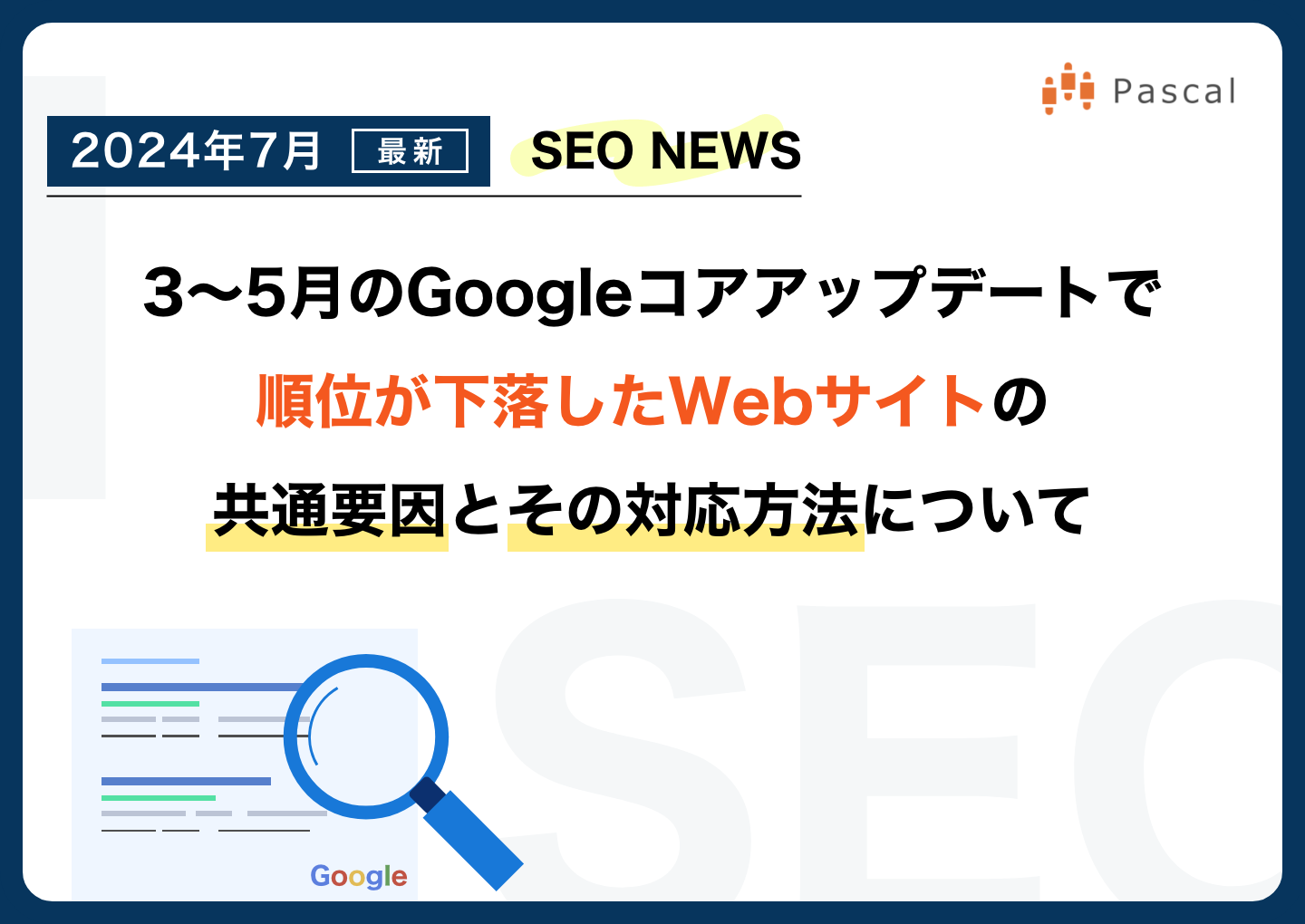 「2024年7月最新 3月〜5月のGoogleコアアップデートで順位が下落したWebサイトの共通要因とその対応方法について」公開のお知らせ