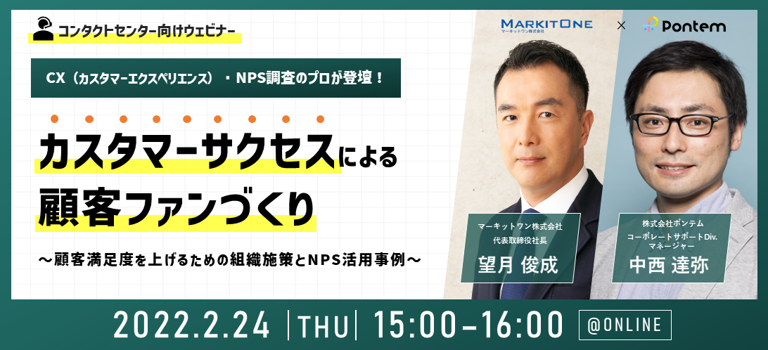 【コンタクトセンター向けウェビナー】カスタマーサクセスによる顧客ファンづくり ~顧客満足度を上げるための組織施策とNPS活用事例~【2022年2月24日(木)開催】