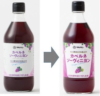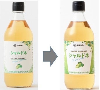 「リンゴ酢仕立ての白ぶどう シャルドネ」と「リンゴ酢仕立ての赤ぶどう カベルネソーヴィニヨン」マルカン酢がラベルデザインを3月1日(水)よりリニューアル