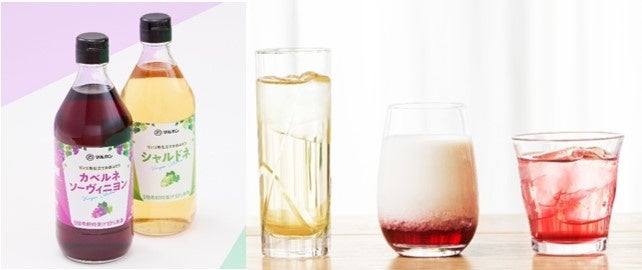 「リンゴ酢仕立ての白ぶどう シャルドネ」は、イタリア産「シャルドネ」を使用し、爽やかな甘酸っぱさが上品で、キレのある後味が特長です。一方、「リンゴ酢仕立ての赤ぶどう カベルネソーヴィニヨン」は、しっかりとしたボディ感のある味わいのイタリア産「カベルネソーヴィニヨン」を使用し、濃厚な甘さとスッキリとした酸味に仕上げました。