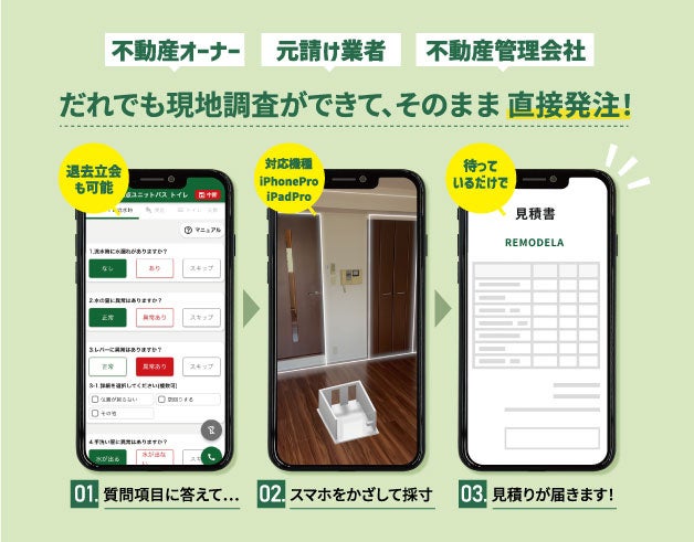 原状回復工事のクラウドサービス「リモデラ原状回復」を開発・運営するREMODELA株式会社(本社:大阪府大阪市、代表取締役社長:福本拓磨)は「だれでも現地調査」を公開しました。これまで一部ユーザーに先行公開していた当サービスが一般公開となりました。