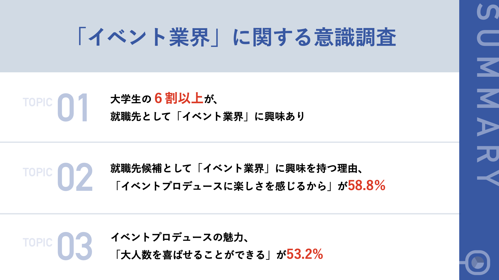 - 就職先候補として「イベント業界」に興味を持つ理由、「イベントプロデュースに楽しさを感じるから」が58.8%