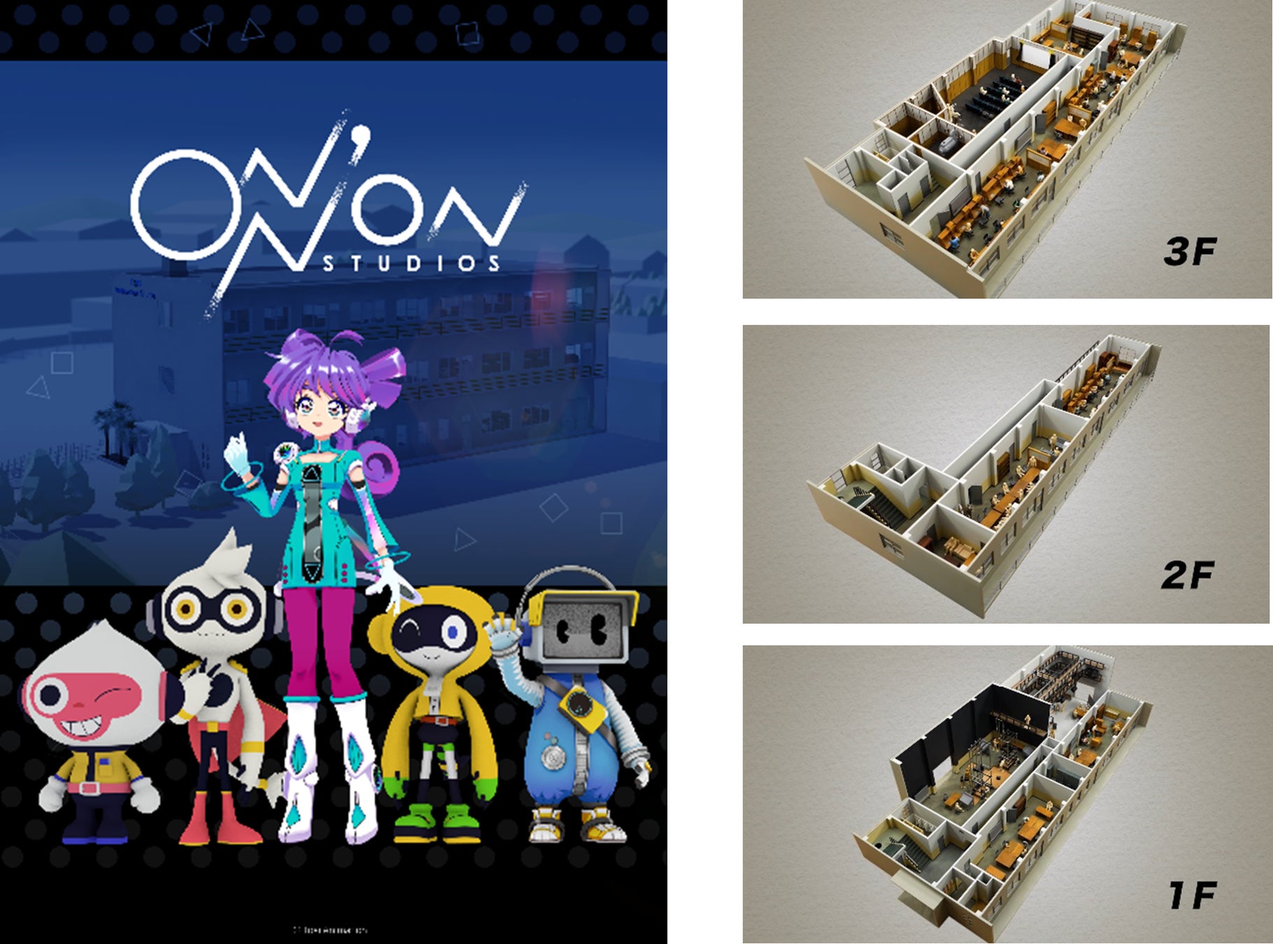 「このプロジェクトは、アニメーション制作の初期、中期、現在を振り返りつつ、バーチャル空間にコミュニケーションの場を提供します。まず最初の今回は、初期企画展として、東映動画スタジオ(一期棟)をリアル(ミニチュア)とバーチャル(VRChatのワールド)で制作しました。1956年4月11日に東映動画・漫画スタヂオの建設が計画され、1956年9月26日に竣工式、同年末に完成。翌年1月9日より本格的な稼働が始まり、東洋一を誇る最新最大のアニメーション制作スタジオが誕生しました。どのようにアニメーション制作をしていたか建物から体感していただきたいと思います。」「このプロジェクトの(ONN’ON=On and on)は、(延々と)という意味があり『ONN’ON STUDIOS』は終わることのない拡張し続けるメタバースワールドです。今後、中期企画展として1990年代の世界を知るワールド、現在企画展としてマルチコンテンツのワールドを発表していきますので『ONN’ON STUDIOS』にご期待ください。」