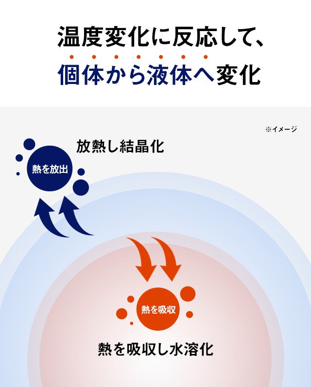 熱を吸収すると液体に、熱を放熱すると液体へと変化。
